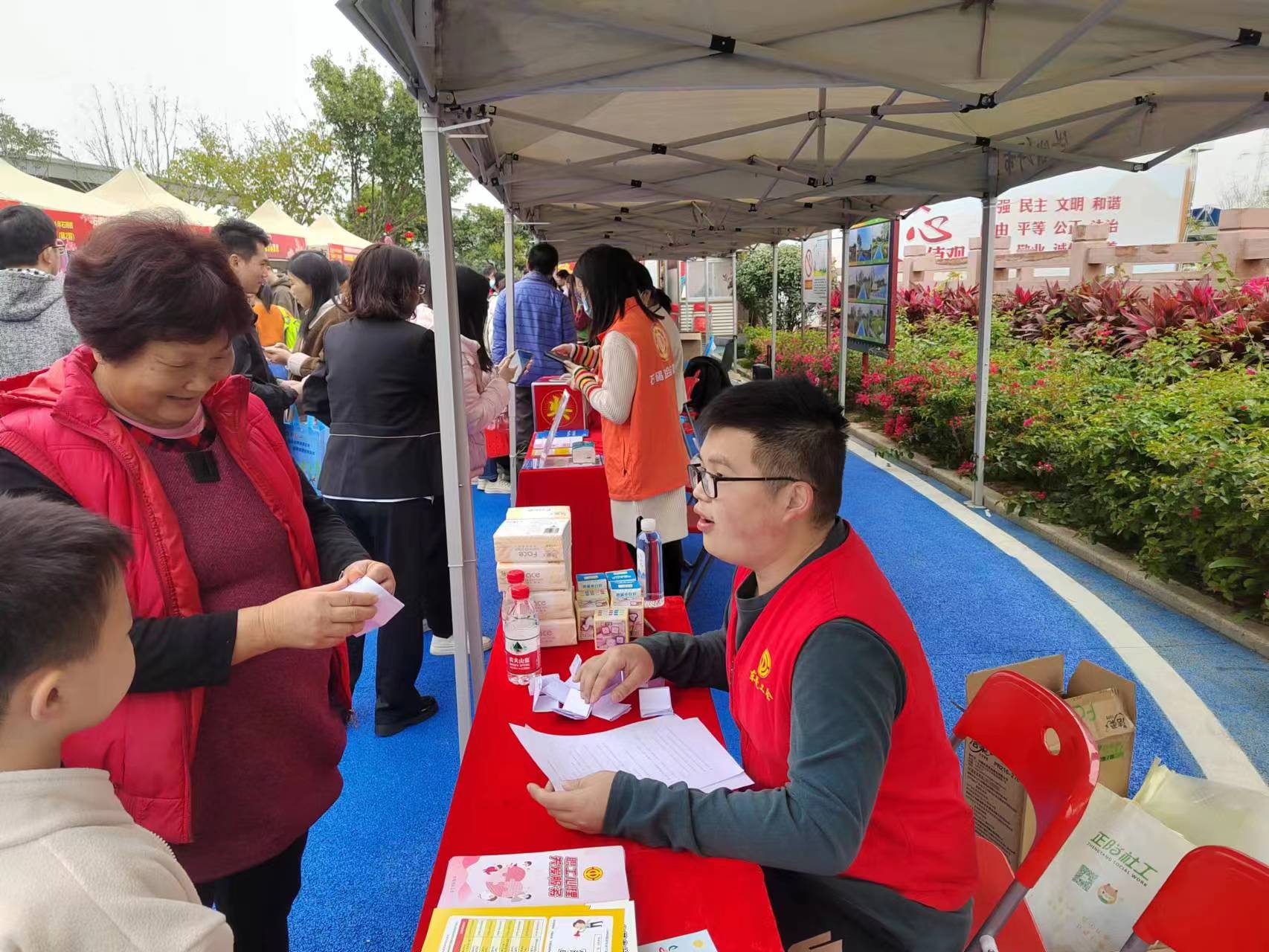 正月十五元宵节,是春节年俗最后一个重要节令,为进一步提高工伤保险政策的社会知晓度,提升工伤保险政策的普及度,2024年2月24日上午,东莞市总工会关爱工伤职工项目社工联合石碣镇新时代文明实践中心在石碣镇起航广场开展“安全工作,从我做起”工伤保险政策宣传活动。