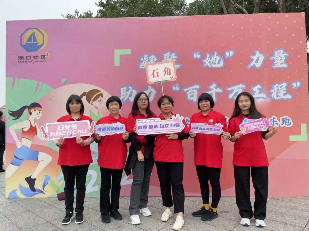 为进一步凝聚巾帼力量,助力“百千万工程”,3月16日上午,涌口社区联合东莞市厚街镇应急管理分局、厚街镇城管分局、厚街镇禁毒办在海月公园举办“凝聚‘她’力量 助力‘百千万工程’”——涌口社区妇女第三届环湖欢乐跑活动。通过环湖跑,让妇女们感受到社区在“美丽庭院”建设中所带来的的环境优化以及生活品质的提升,引导妇女积极参与“美丽庭院”建设,争做“美丽庭院”的实践者、推动者。