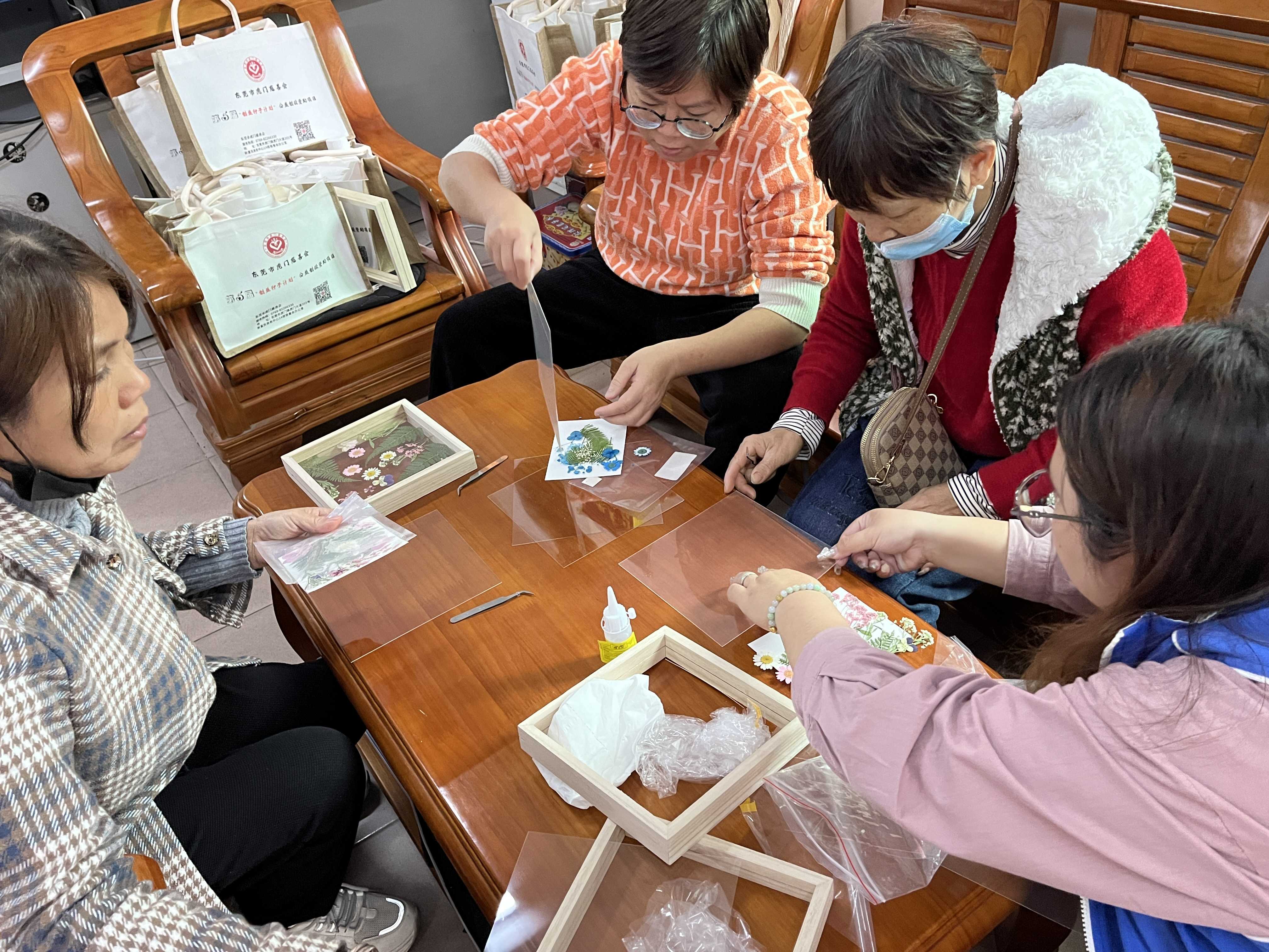 活动开始,社工组织护工轮流汇报近期工作要点,介绍本次活动开展的目的,借着三八妇女节的到来一起diy干花相框,社工为服务对象示范制作的技巧以及注意事项,护工们纷纷动起手来开始自己的创作,她们的笑容像花一样热情似火,称完成后还可以长期摆在家中装饰,太美了。社工告诉护工们这一次的diy用了真情、真心、健康等元素制作,让大家能够“花享时光,幸福三八”。