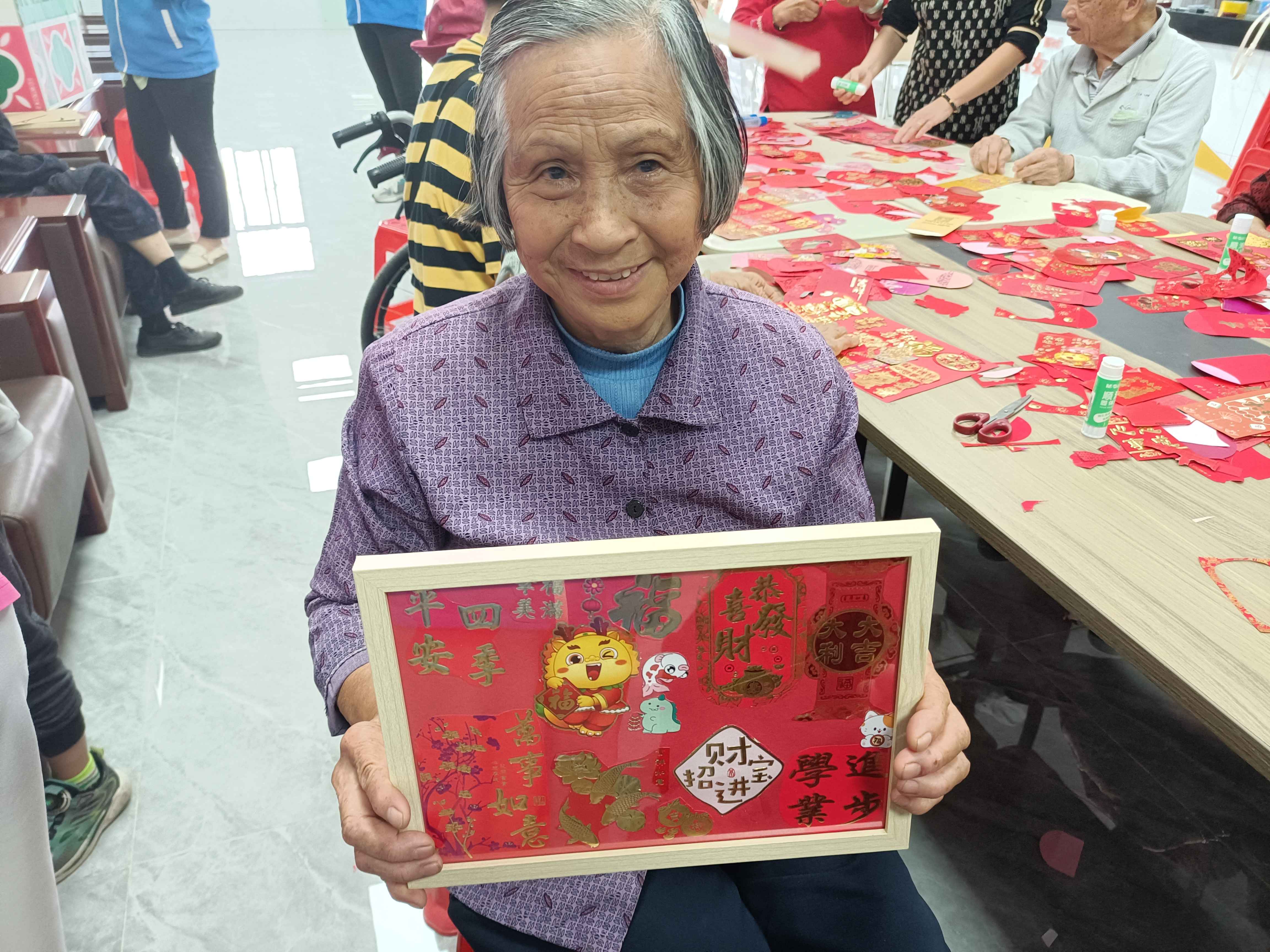这次活动不仅让长者们体验到了制作“红包相框画”的乐趣,更让他们在实践中感受到了传统文化的魅力。小小的红包,向长者们传递了一份祝福,在锻炼了长者们的动手能力的同时也激发了长者们的创作兴趣,更是从实际行动中了解“变废为宝”的重要意义。