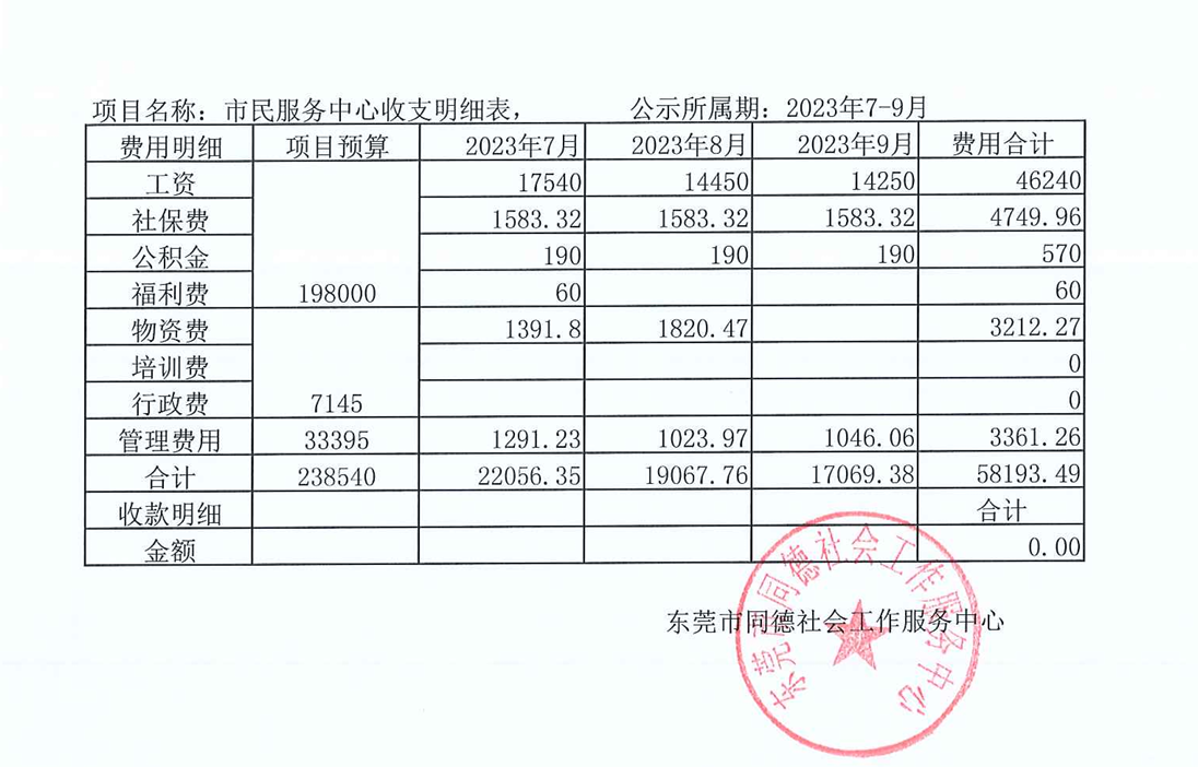 市民服务中心2023年7-9月资金使用情况公示