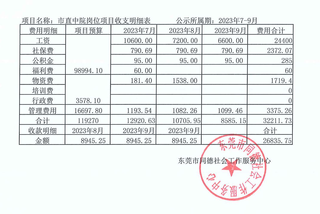 市直中院岗位项目2023年7-9月资金使用情况公示