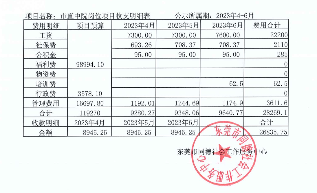 市直中院岗位项目2023年4-6月资金使用情况公示