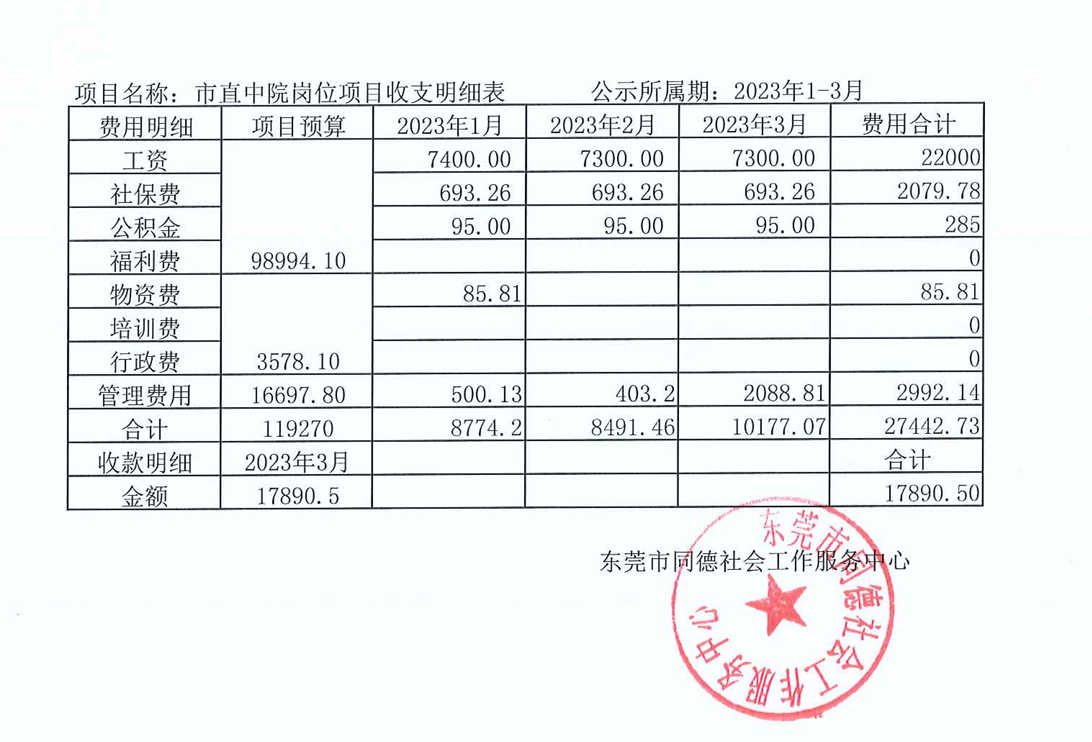 市直中院岗位项目2023年1-3月资金使用情况公示