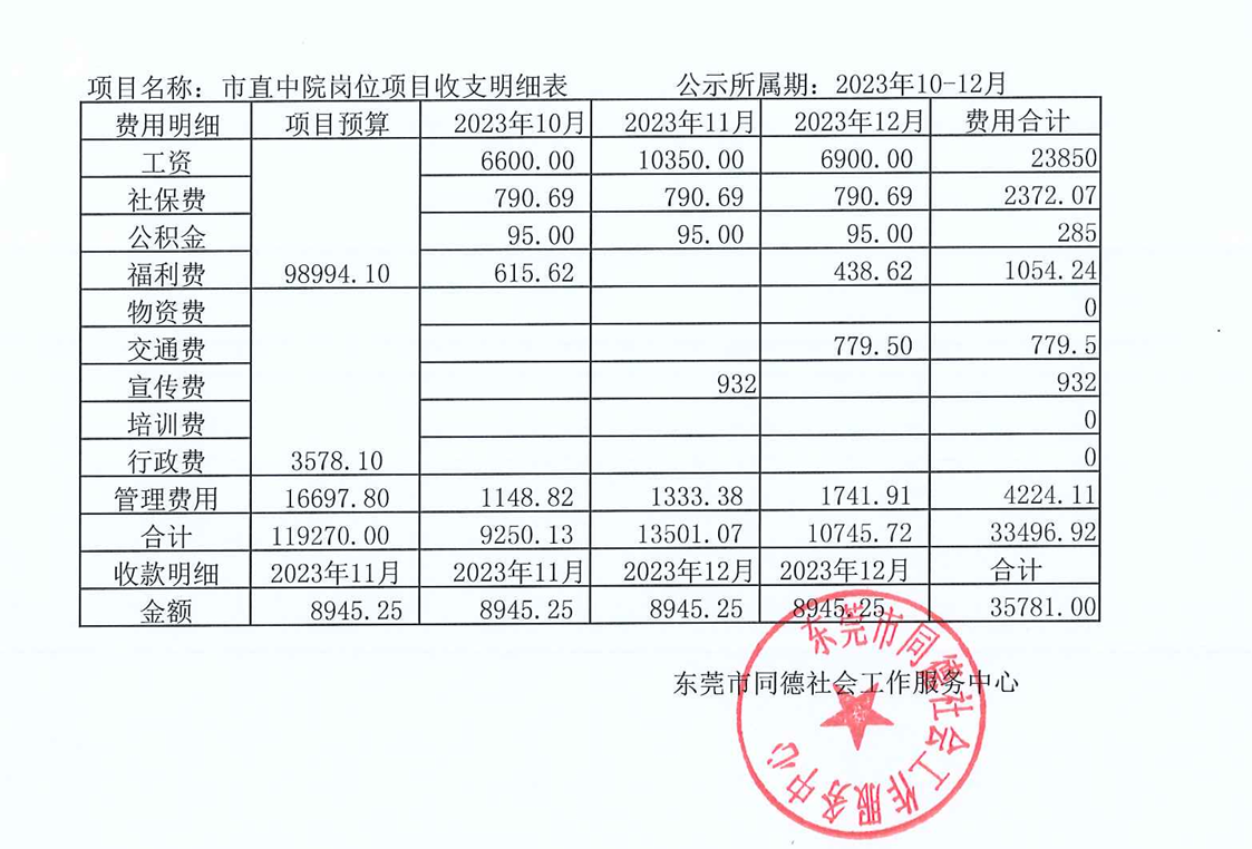 市直中院岗位项目2023年10-12月资金使用情况公示