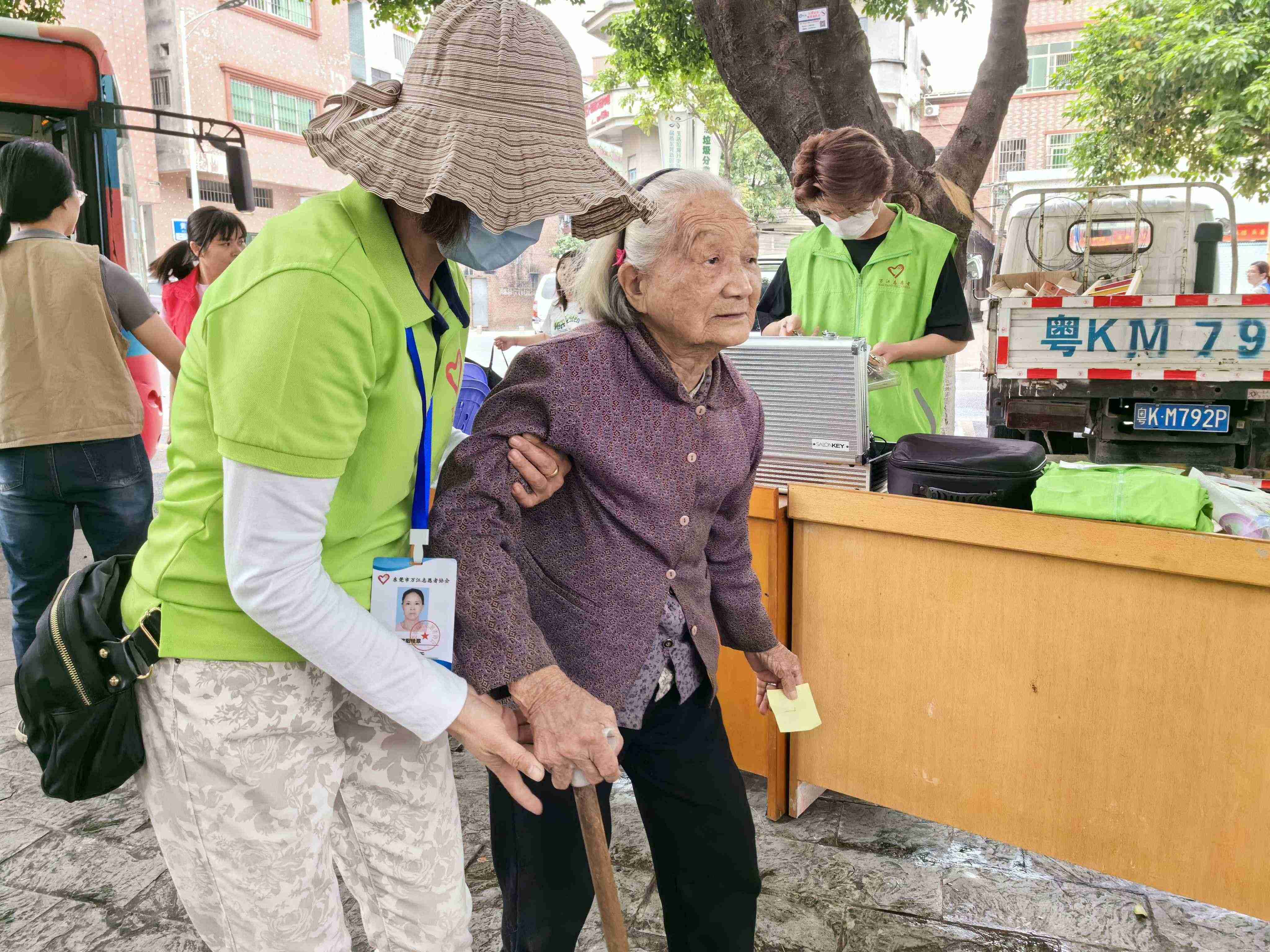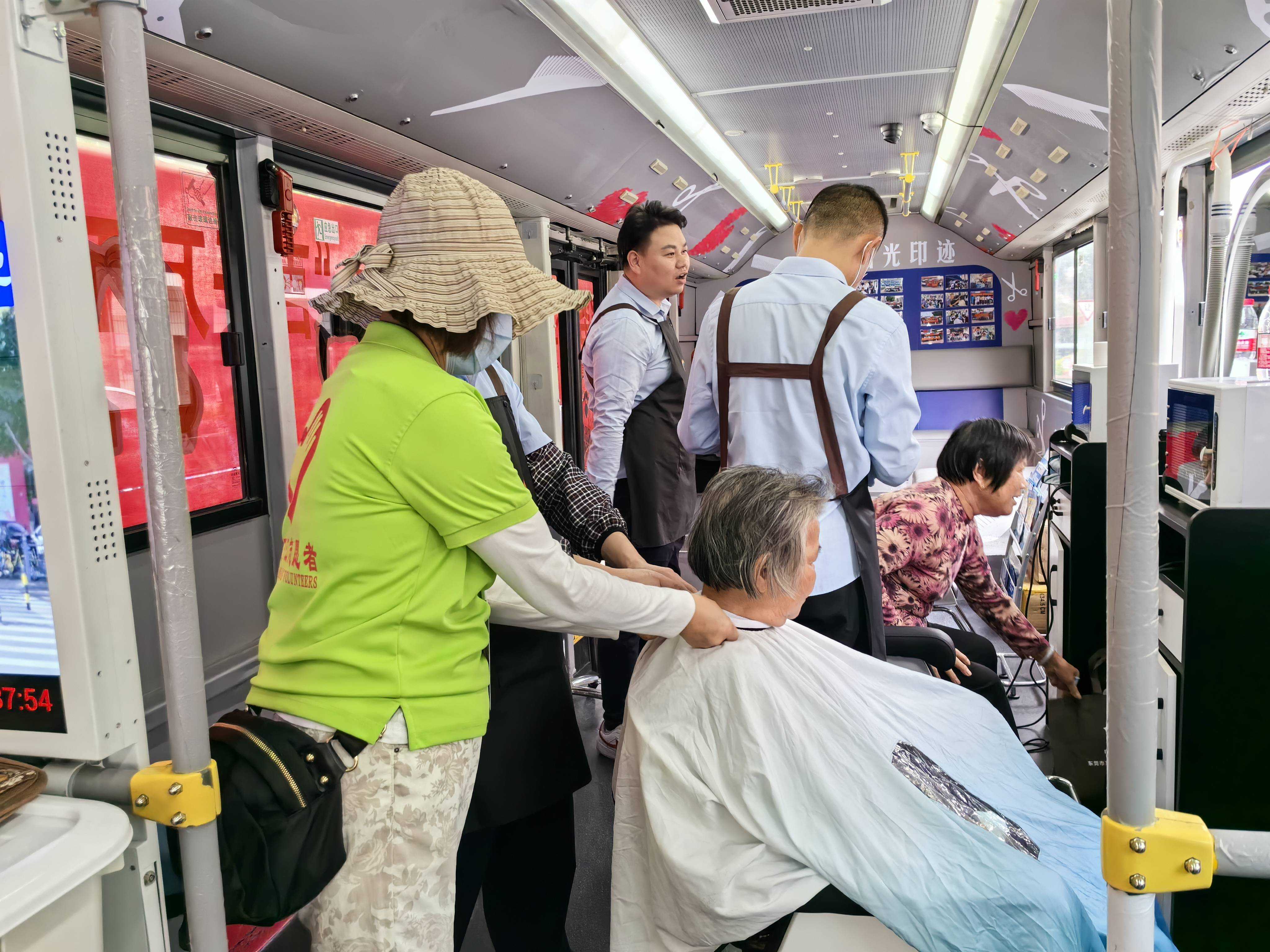 当天下午,东莞城巴流动理发车以及名艺世家理发师纷纷到达黄粘洲社区,活动还没开始,就已经有村民排队剪头发。车内理发设备齐全,环境安静舒适,专业的理发师细心询问老人和小孩的理发需求,为他们剪出一个个神清气爽的发型,同时名艺世家10多名发型师在树荫下为更多的村民提供专业的理发服务,村民好评连连。为了方便难以出行的长者,理发志愿者还服务到家,上门为行动不便的老年人义剪。
