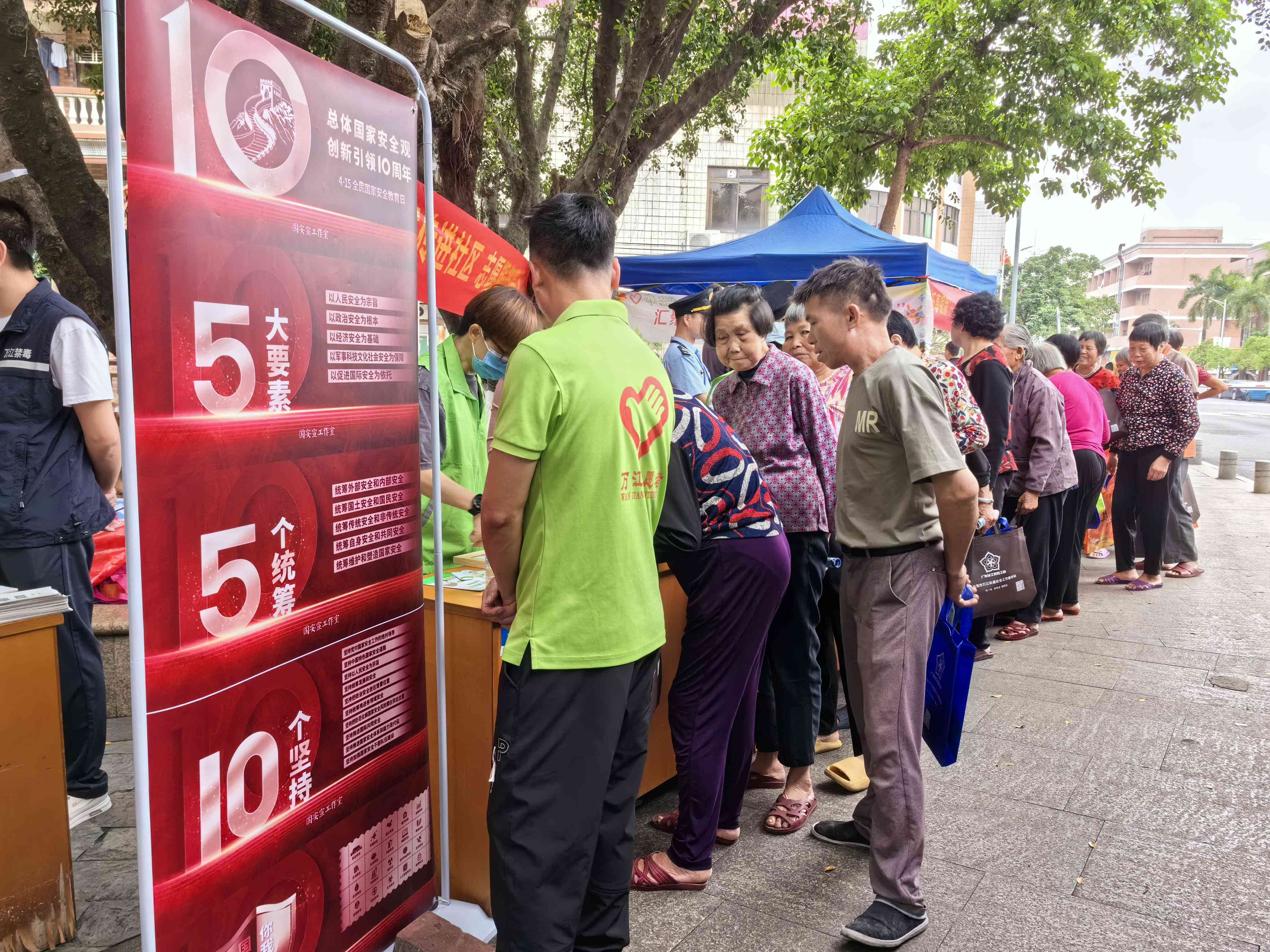 活动现场,居家养老项目社工设置居家养老宣传摊位,以互动游戏的方式吸引群众参加。反诈大音响循环播放着电信诈骗案例,提醒村民提高警惕,慎防诈骗,保护好自己的“钱袋子”。现场还设置了“扫黄”“打非”、网络安全、总体国家安全观、应急救护、生活垃圾分类、禁毒等知识宣传以及残疾人政策宣传摊位。