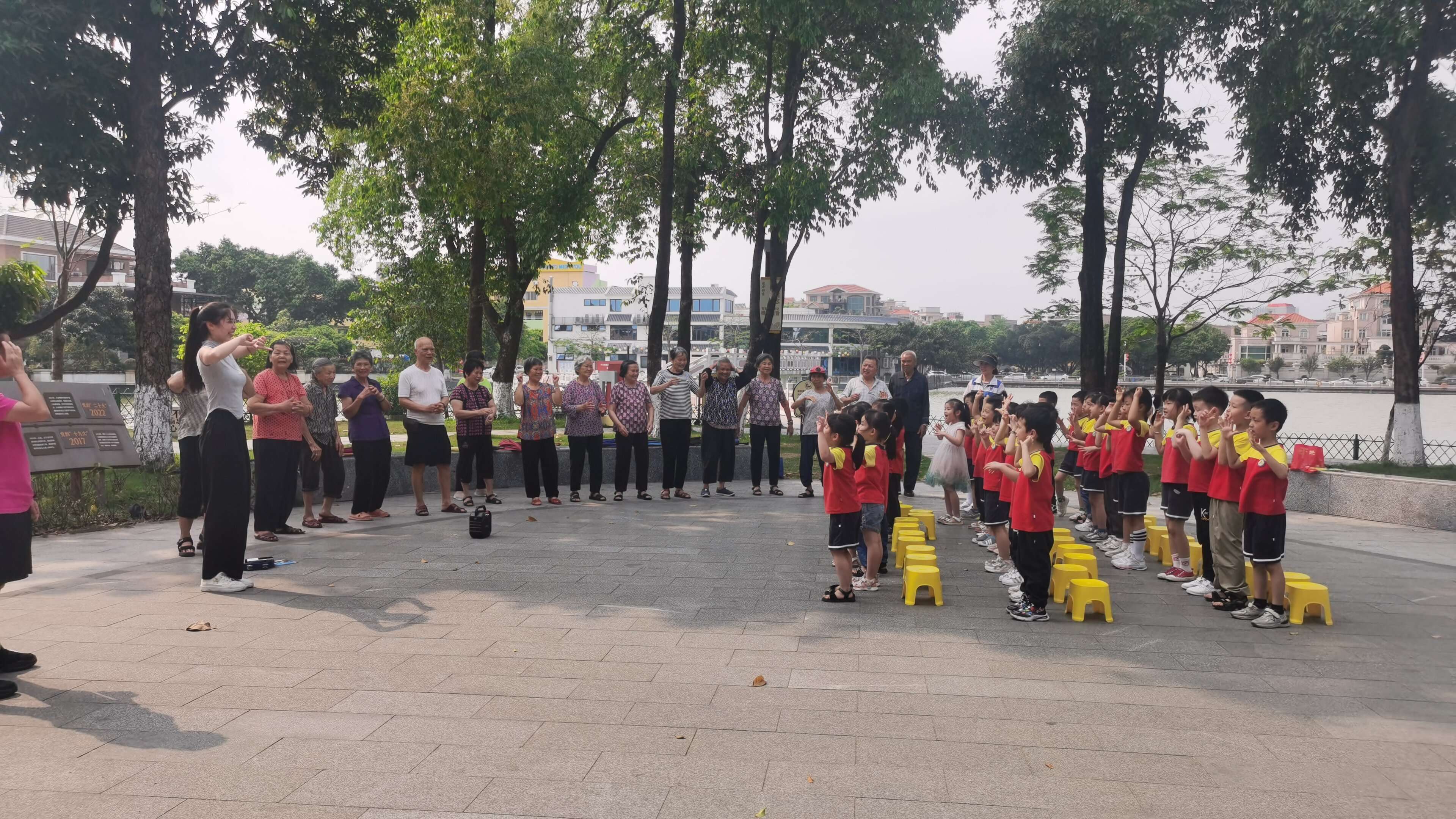 活动伊始,幼儿园老师带领孩子和老人一起进行了手指操热身活动,孩子们的天真活泼很快感染了在场的每一位老人,大家迅速融入了这个欢乐的氛围。