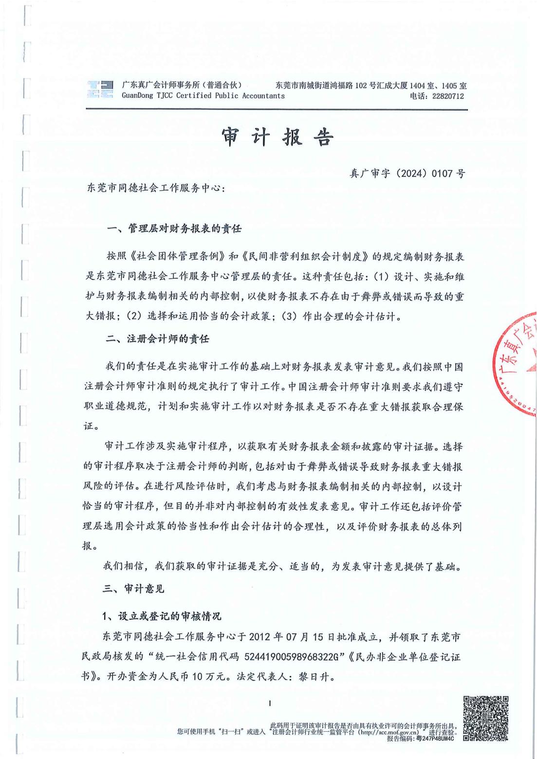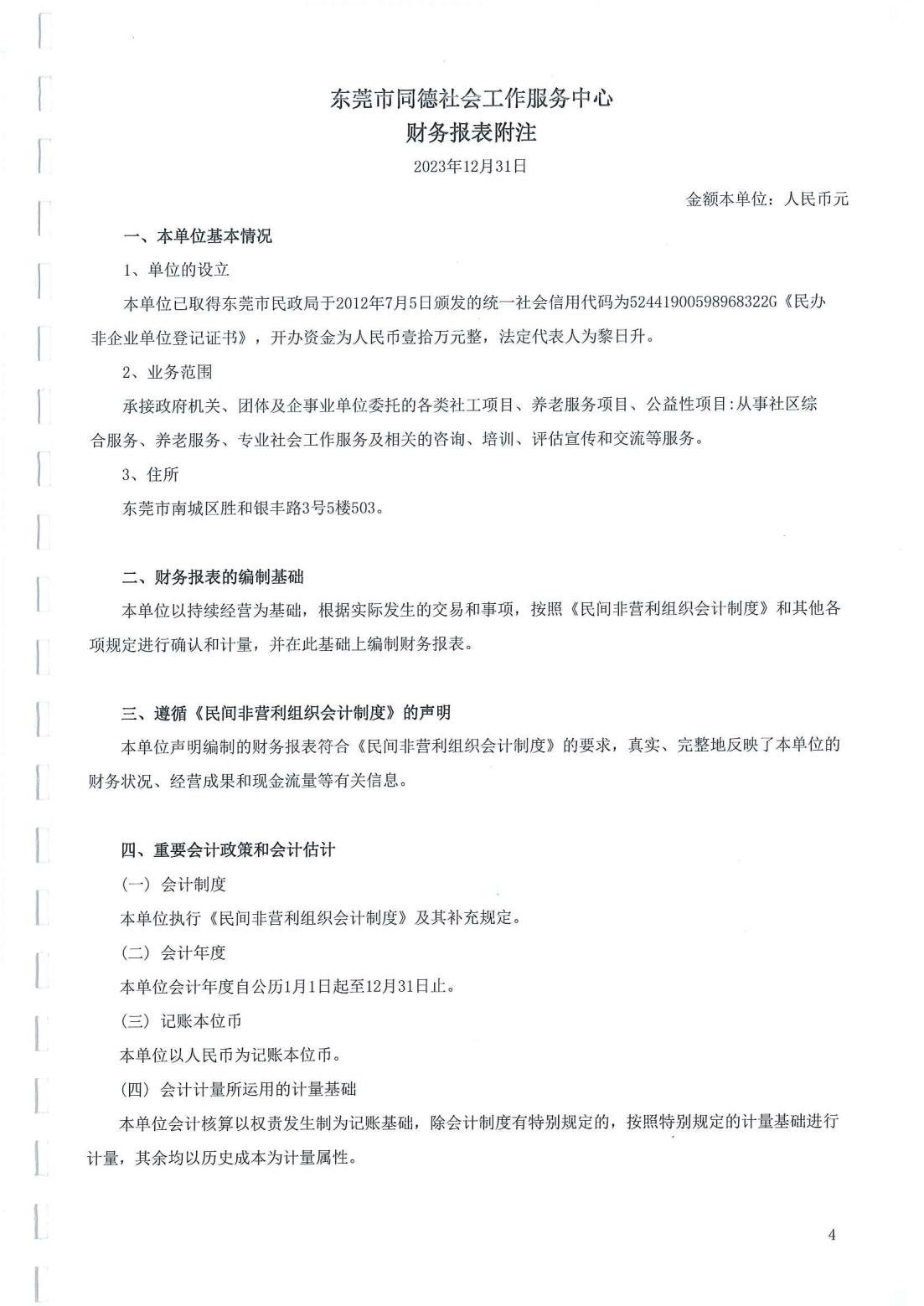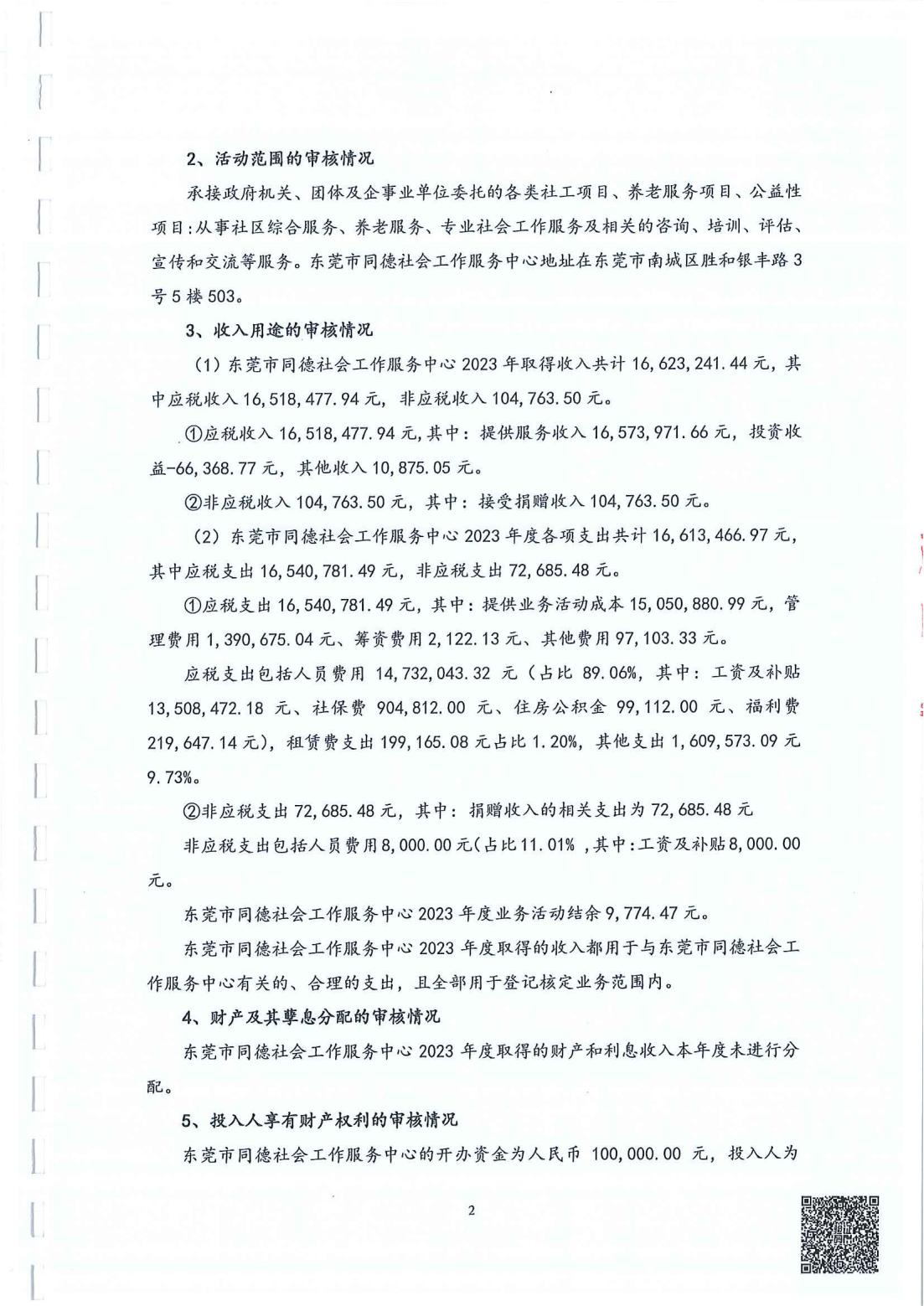 东莞市同德社会工作服务中心2023年度财务审计报告