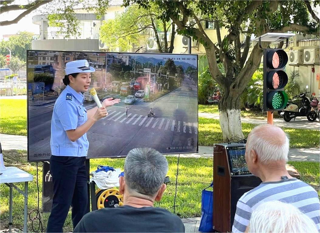 宣讲员通过播放交通警示教育视频,向在场的老人们直观展示了交通事故的危害性和遵守交通规则的重要性。随后,宣讲员结合现实案例,通俗易懂地讲解了老年人在出行过程中应遵守的交通规则和注意事项,如过马路要走人行横道、注意观察交通信号、不闯红灯等。