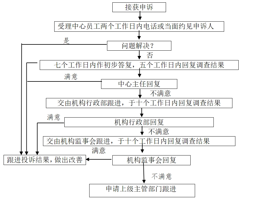 9、投诉处理完成后,由投诉处理人员上级主管或机构管理人员提出投诉处理意见,被处罚人有异议的可向机构管理人员申诉;