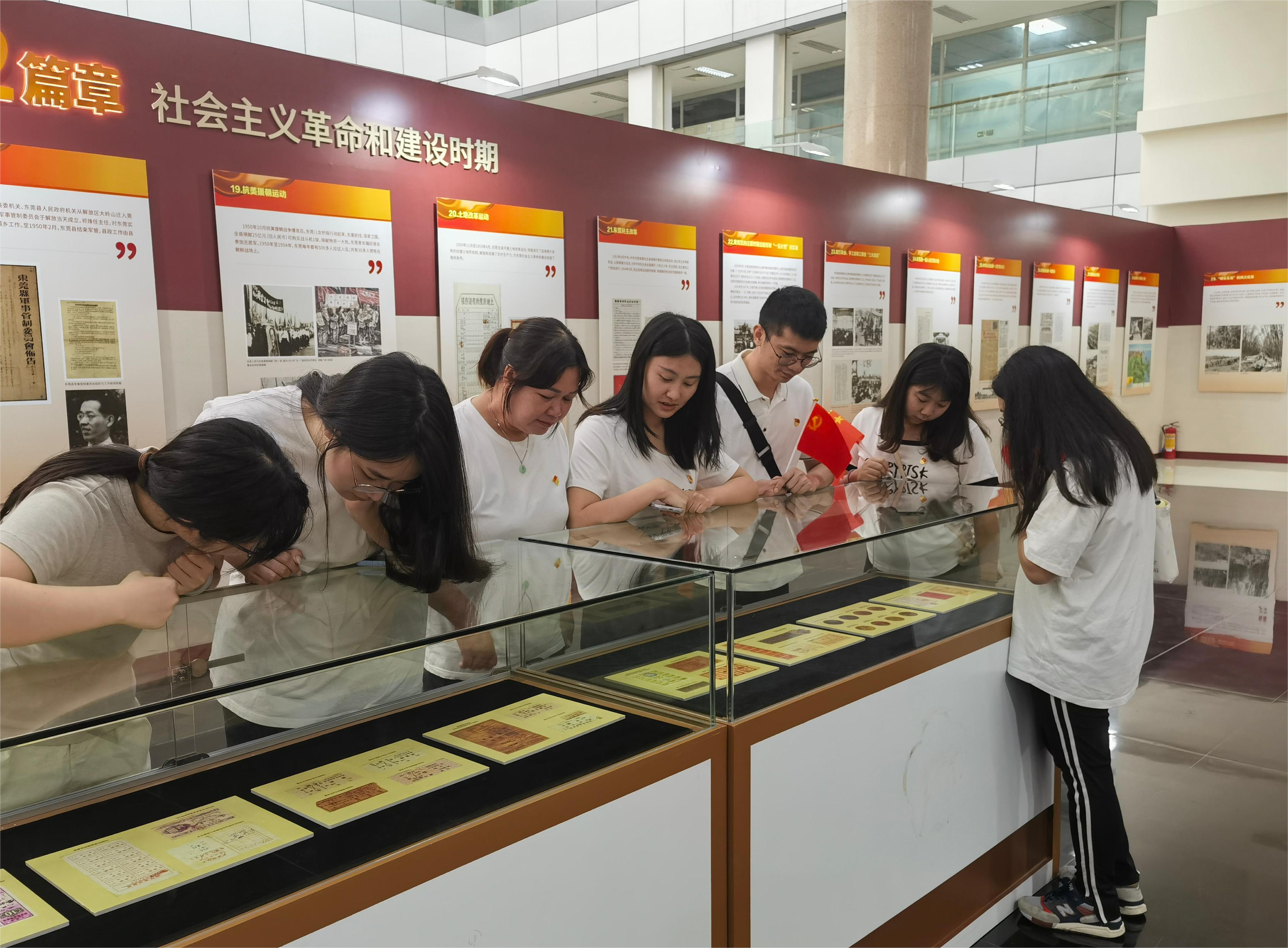 参观开始前,全体共建单位成员一起手持国旗和党旗,共同奏唱“没有共产党就没有新中国”这首红色歌曲,激昂的旋律回荡在图书馆内,为活动营造了庄严肃穆的氛围。