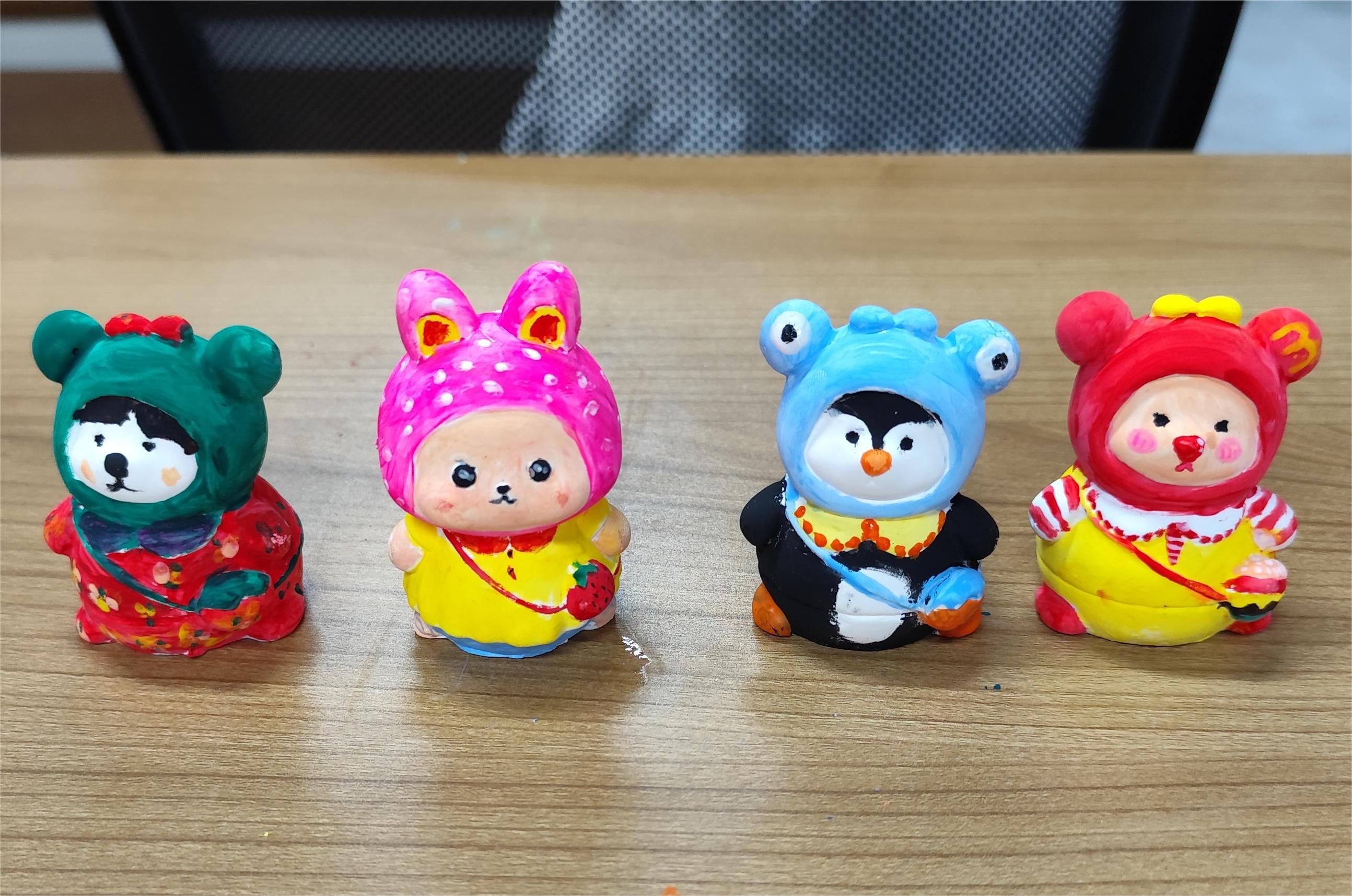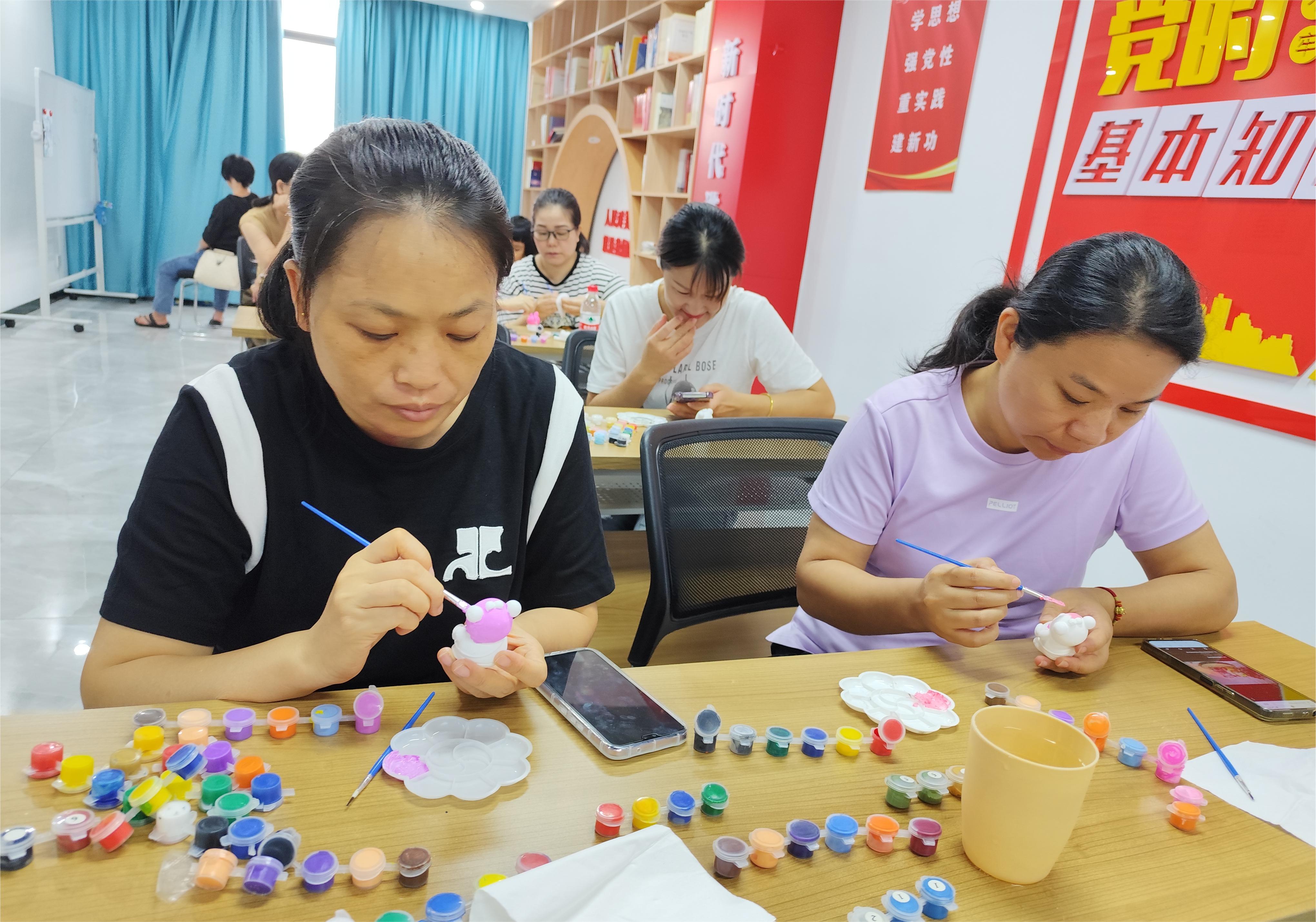 随后,活动进入了轻松愉快的实践环节——“石膏娃娃涂色减压”。在社工的引导下,大家纷纷拿起画笔,挑选自己喜爱的颜色,在空白的石膏娃娃上自由挥洒创意与情感。色彩在指尖跳跃,不仅给石膏娃娃赋予了生命,更在无形中释放了她们内心的压力与烦恼。现场欢笑声不断,每位参与者都沉浸在创作的快乐中,享受着这份难得的宁静与放松。