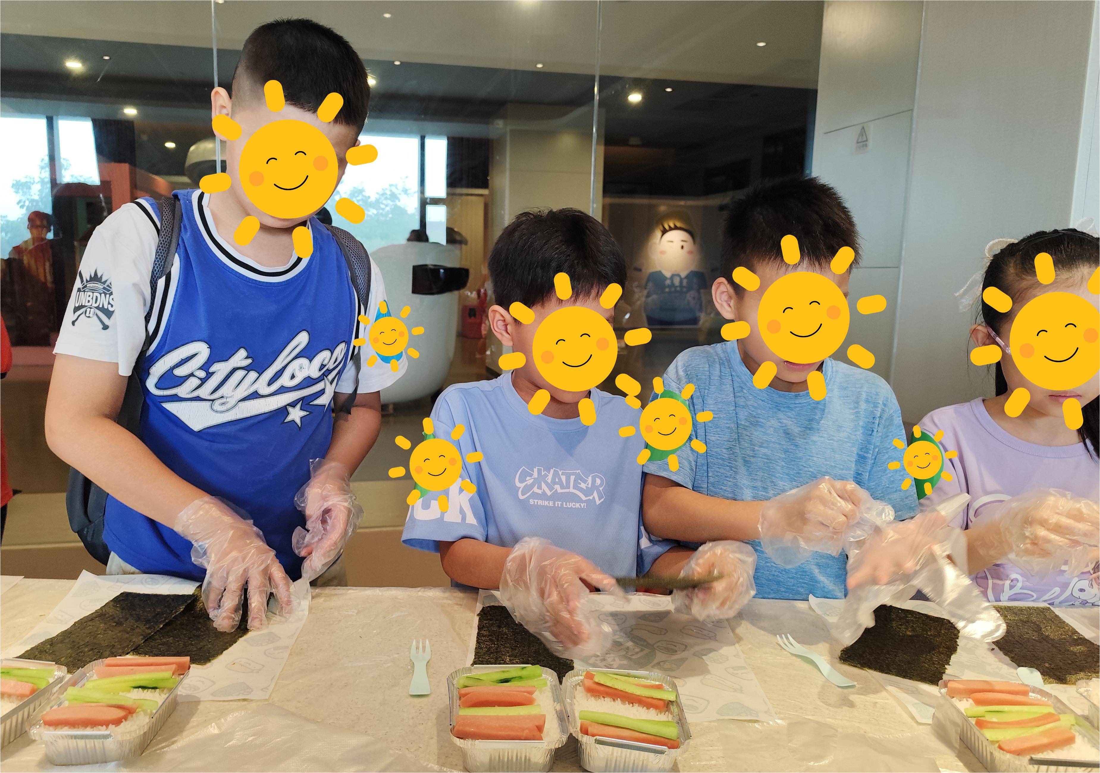 随着活动的深入,DIY饭团环节成为了孩子们最期待的时刻。在工作人员的指导下,孩子们戴上手套,围坐在工作台旁,面前摆放着各式各样的食材:新鲜出锅的米饭、紫菜、火腿、青瓜,孩子们发挥自己的创意,将米饭与食材巧妙结合,变成美味的饭团,现场充满了孩子们的欢笑声。