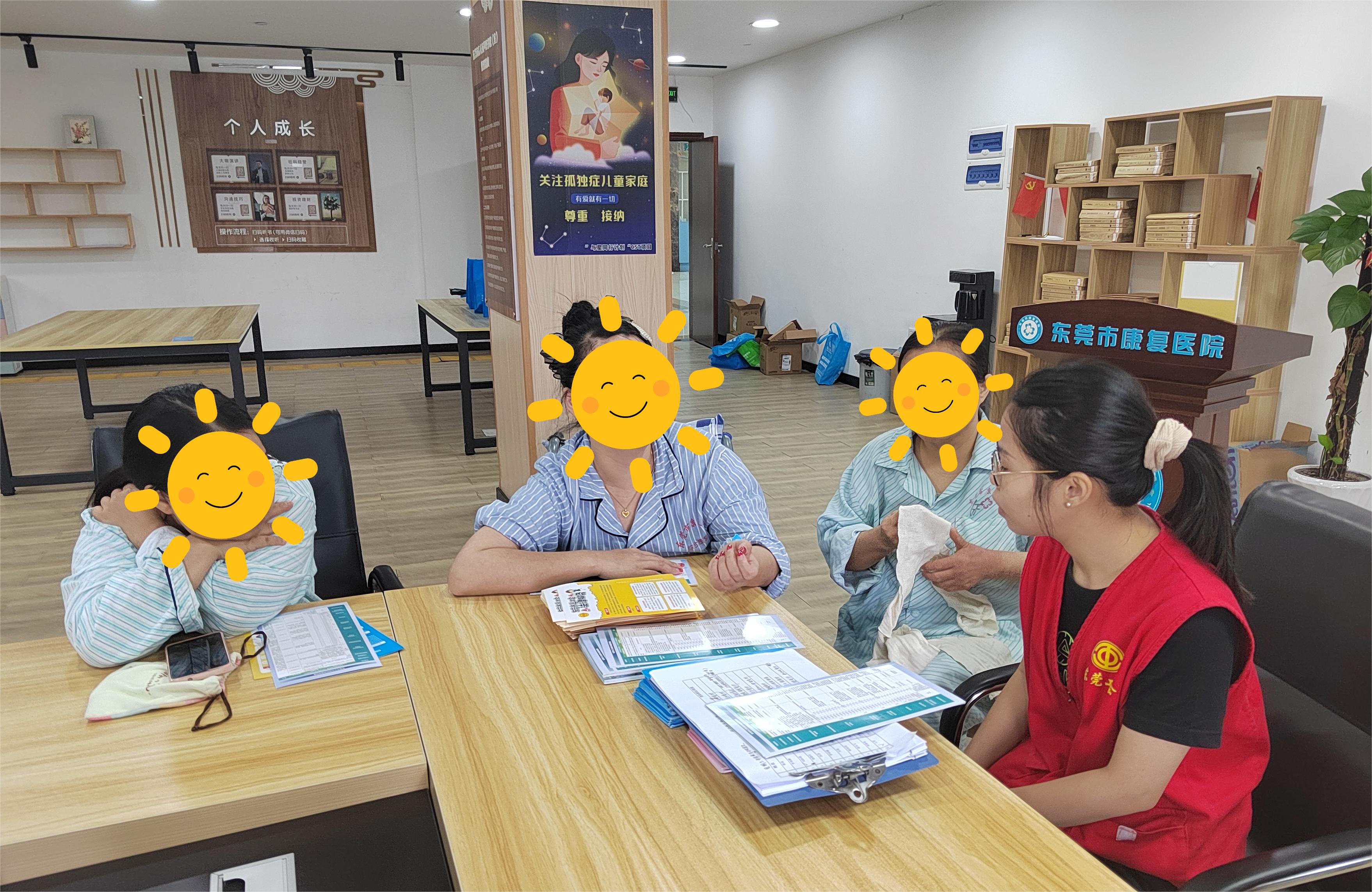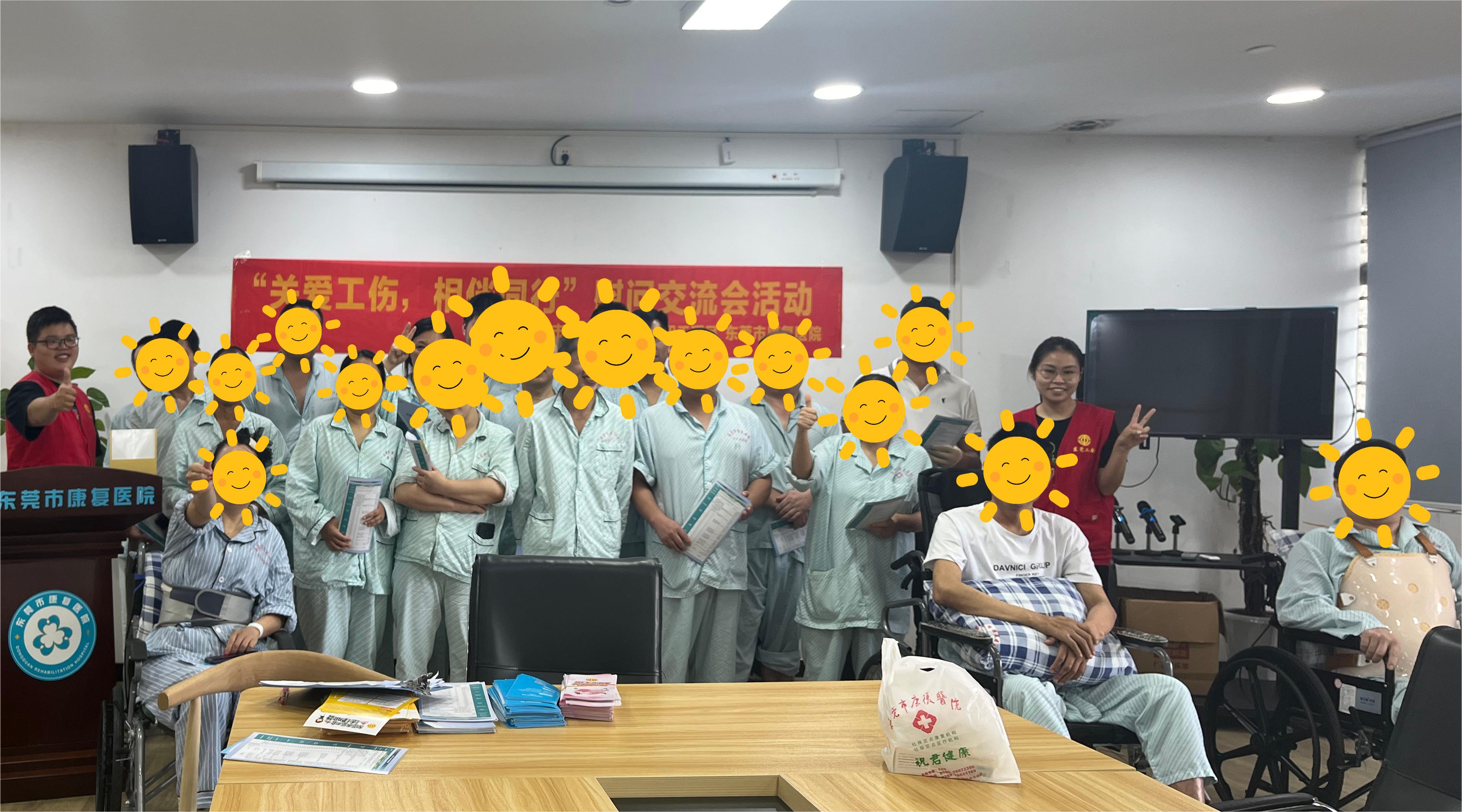 社工在走访社保保险服务协议机构东莞市康复医院时了解到,该院的工伤职工在康复期间容易产生低落、压抑的负面情绪,并且对工伤政策的知识知之甚少,不知如何应对工伤。为了让他们早日走出阴霾,重新拥抱生活,同德驻东莞市总工会关爱工伤职工项目社工于2024年7月12日上午在院内开展“关爱工伤,相伴同行”交流慰问活动。