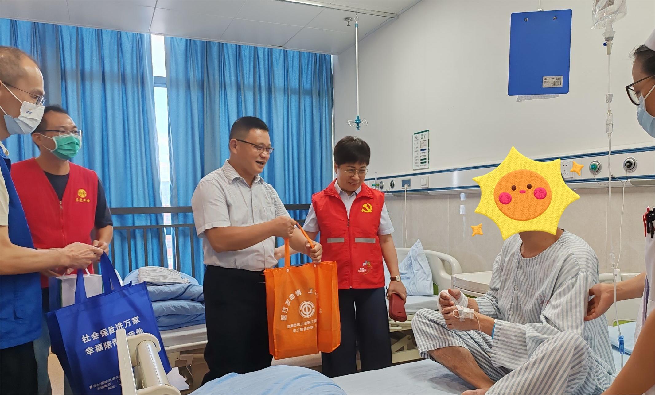 活动中,东莞市总工会党组成员、副主席何志雄带头深入医院住院部,参观并详细了解虎门医院的文化传承、发展历史、医疗技术以及日常活动情况。他们走进工伤职工的医疗区域,密切关注职工们在院的日常情况,表达了对工伤职工的深切关怀。随后,何志雄副主席等一行人来到住院部病房和康复大楼里,对工伤职工进行了亲切慰问,并送上了精心准备的慰问品。每一份慰问品都承载着满满的关爱与祝福,让工伤职工们感受到了来自社会各界的温暖。