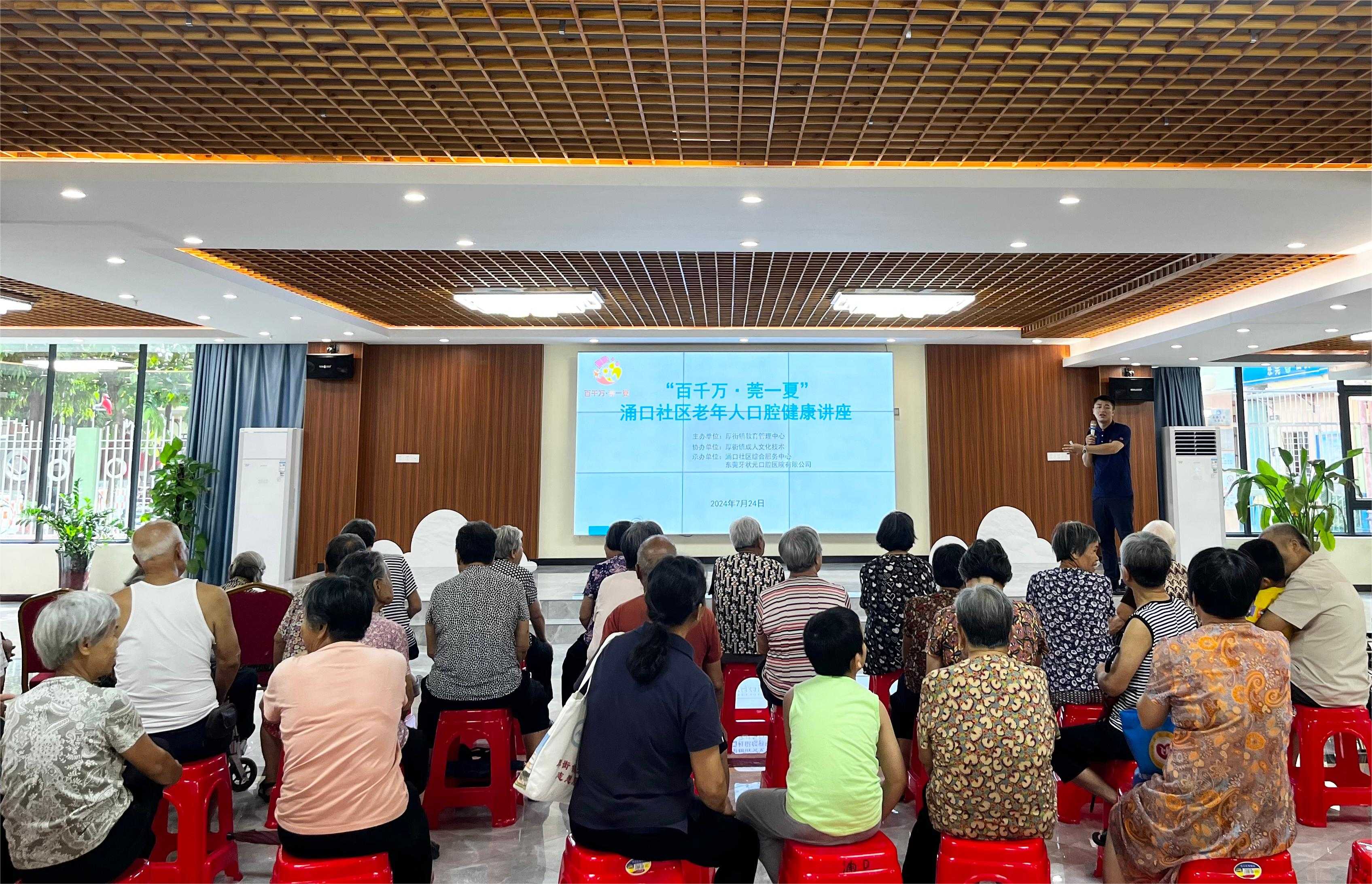 为丰富社区老年人的健康知识,打通群众健康服务的“最后一米”,健康赋能“百千万工程”,2024年7月24日,一场主题为“百千万•莞一夏”涌口社区老年人口腔健康讲座顺利开展。本次讲座由厚街镇教育管理中心主办,厚街镇成人文化技术学校协办,同德驻厚街涌口社区综合服务中心联合东莞牙状元口腔医院有限公司统筹开展。