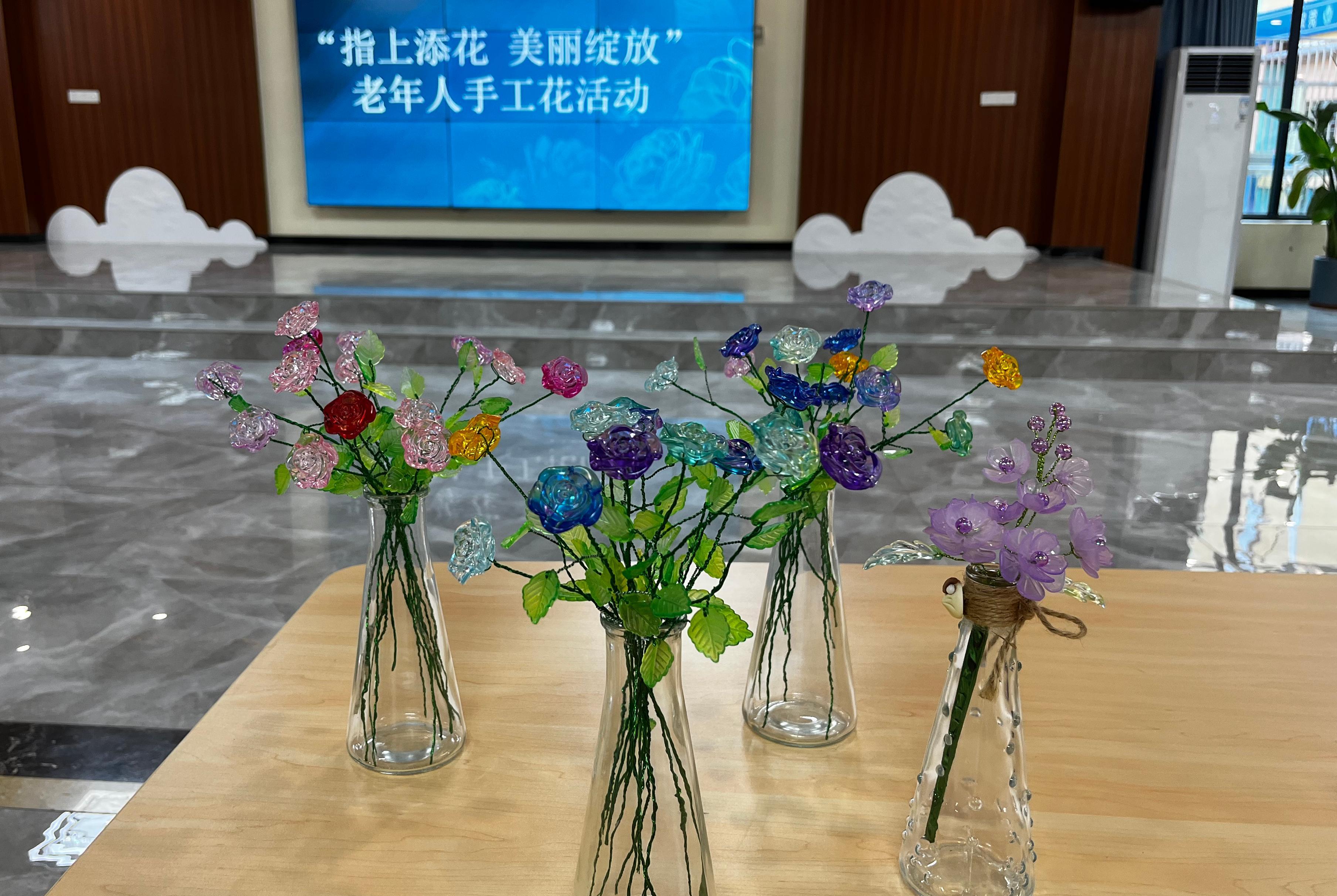 经过一个小时的努力,一朵朵精美的手工花在老人们的手中绽放。它们不仅装点了现场,更点亮了老人们的心房。大家纷纷展示自己的作品,相互欣赏,彼此赞美,脸上洋溢着满足与幸福的笑容。