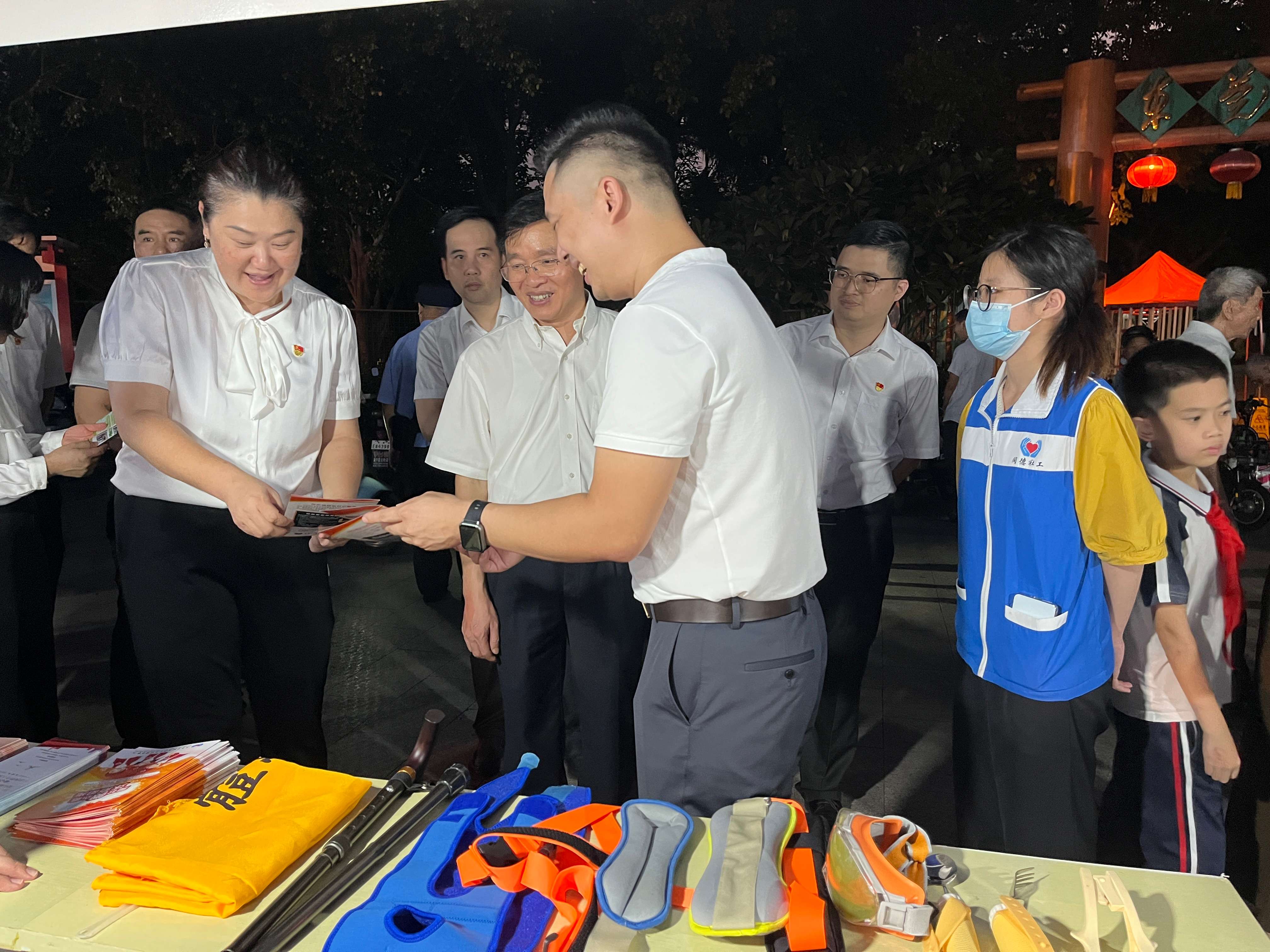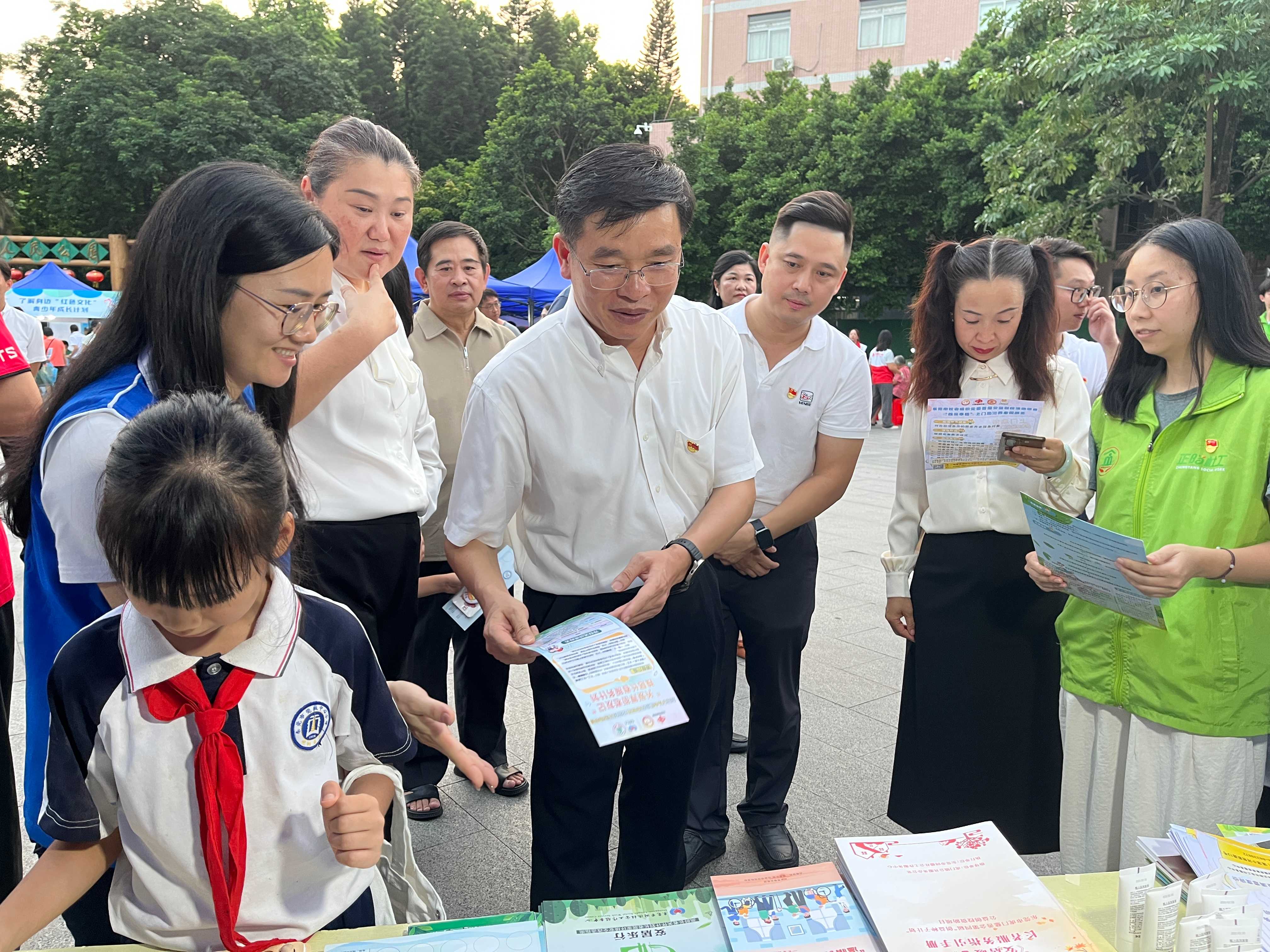 颁牌仪式结束后,由市民政局党组书记、局长黄荣峰带头的一行领导来到各个惠民宣传展示摊位参观,与各个摊位的工作人员进行了解互动交流。其中,领导队伍来到我机构摊位了解老人助浴项目的情况。