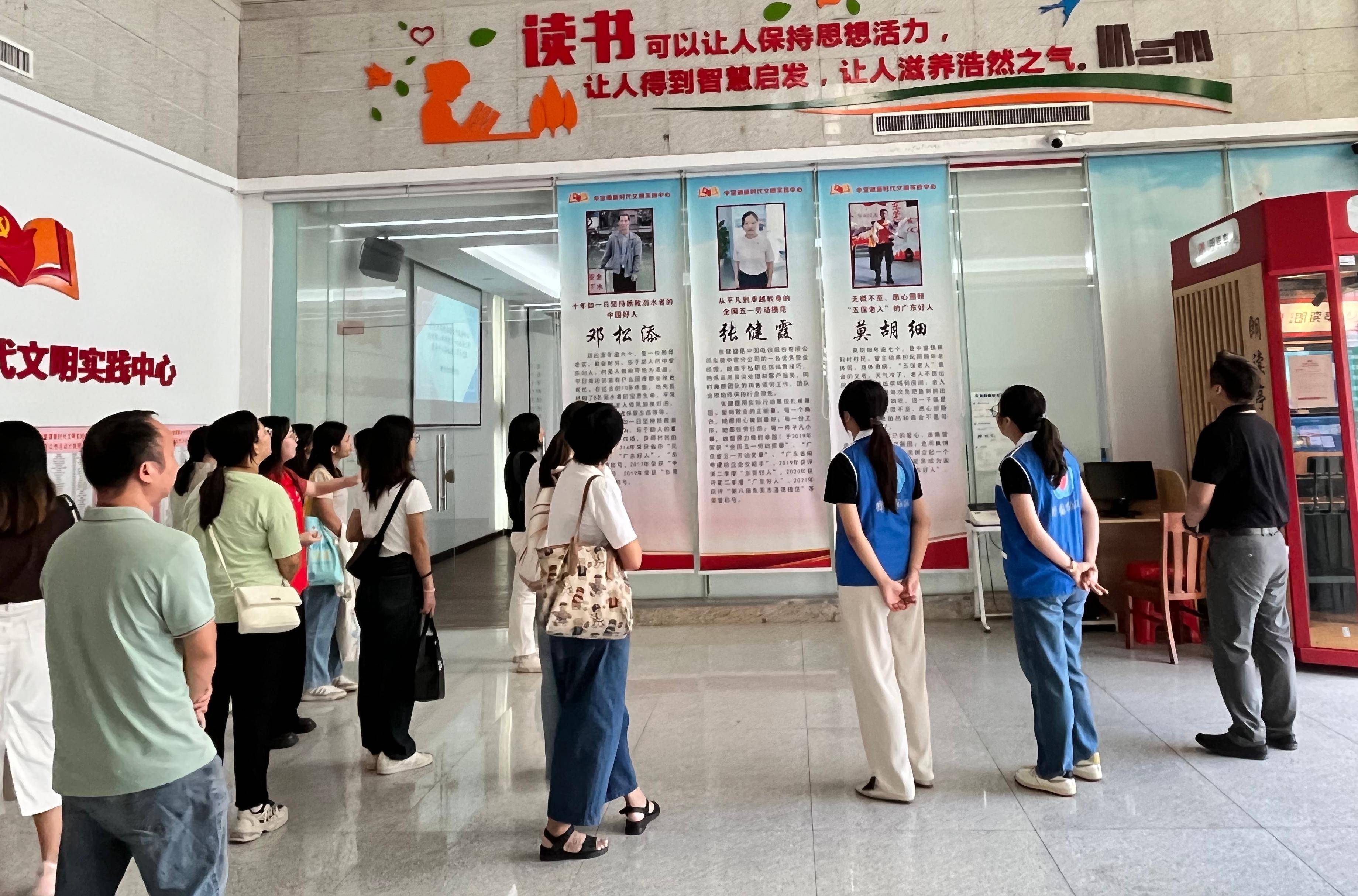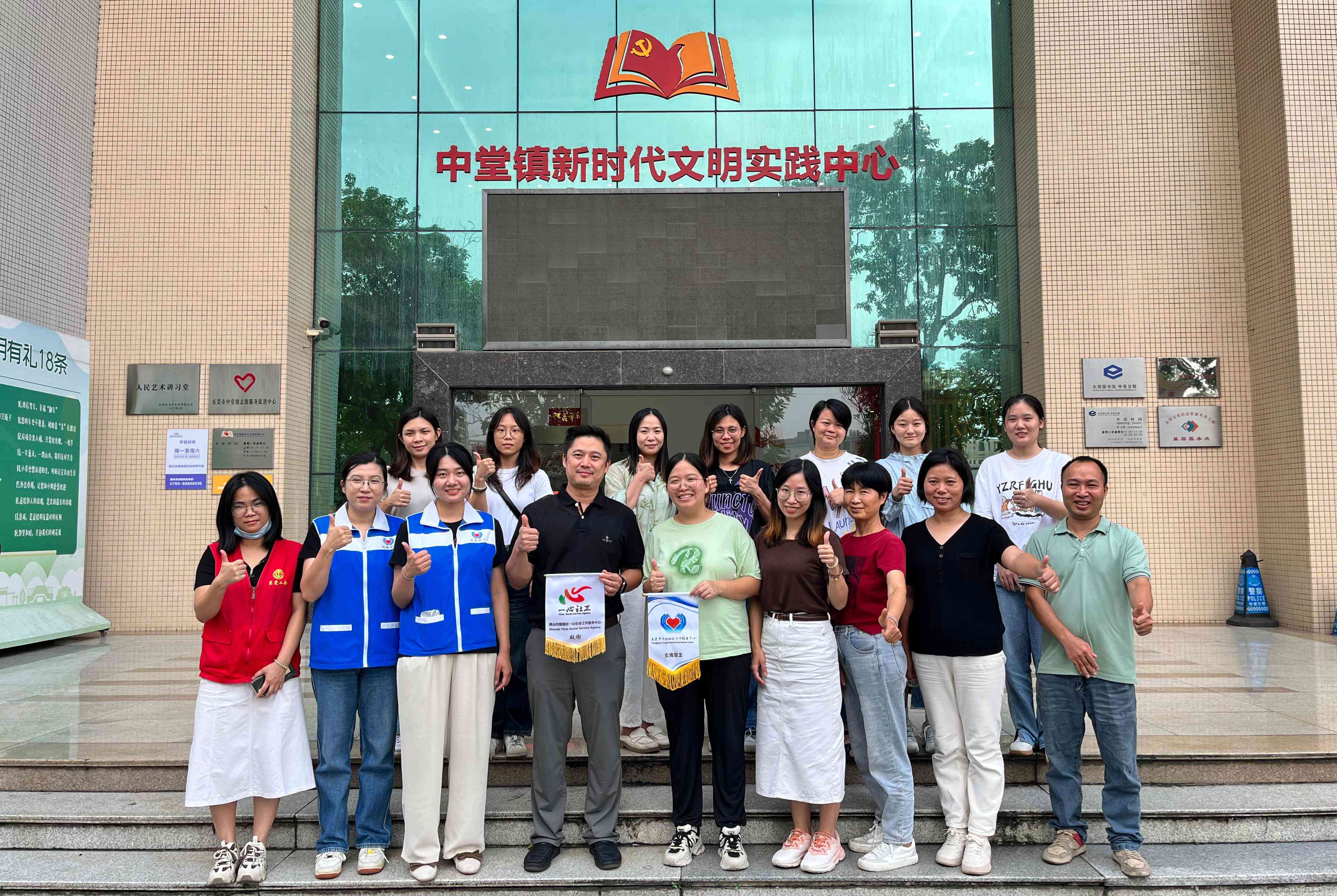 交流伊始,中堂镇新时代文明实践中心社工负责人袁琰璋引导着一行人参观了整个中心,并且详细介绍了中心的运作管理模式、服务开展、实践经验等内容。