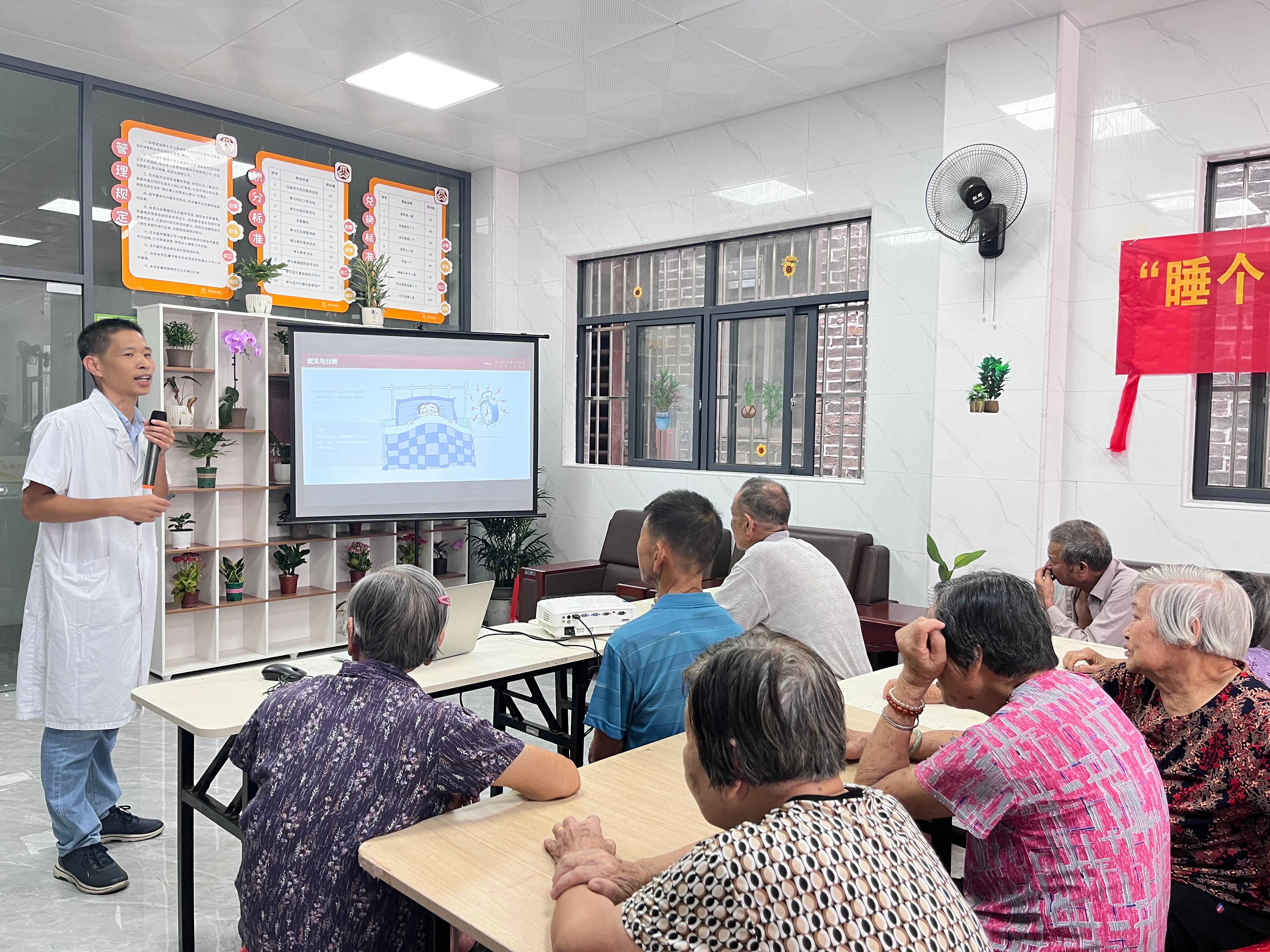 为提高长者的睡眠质量,关注长者身心健康,2024年9月27日,同德驻万江居家养老项目小组社工联合东莞市人民医院医生在万江新村社区开展了“睡个安稳觉”长者睡眠健康讲座。