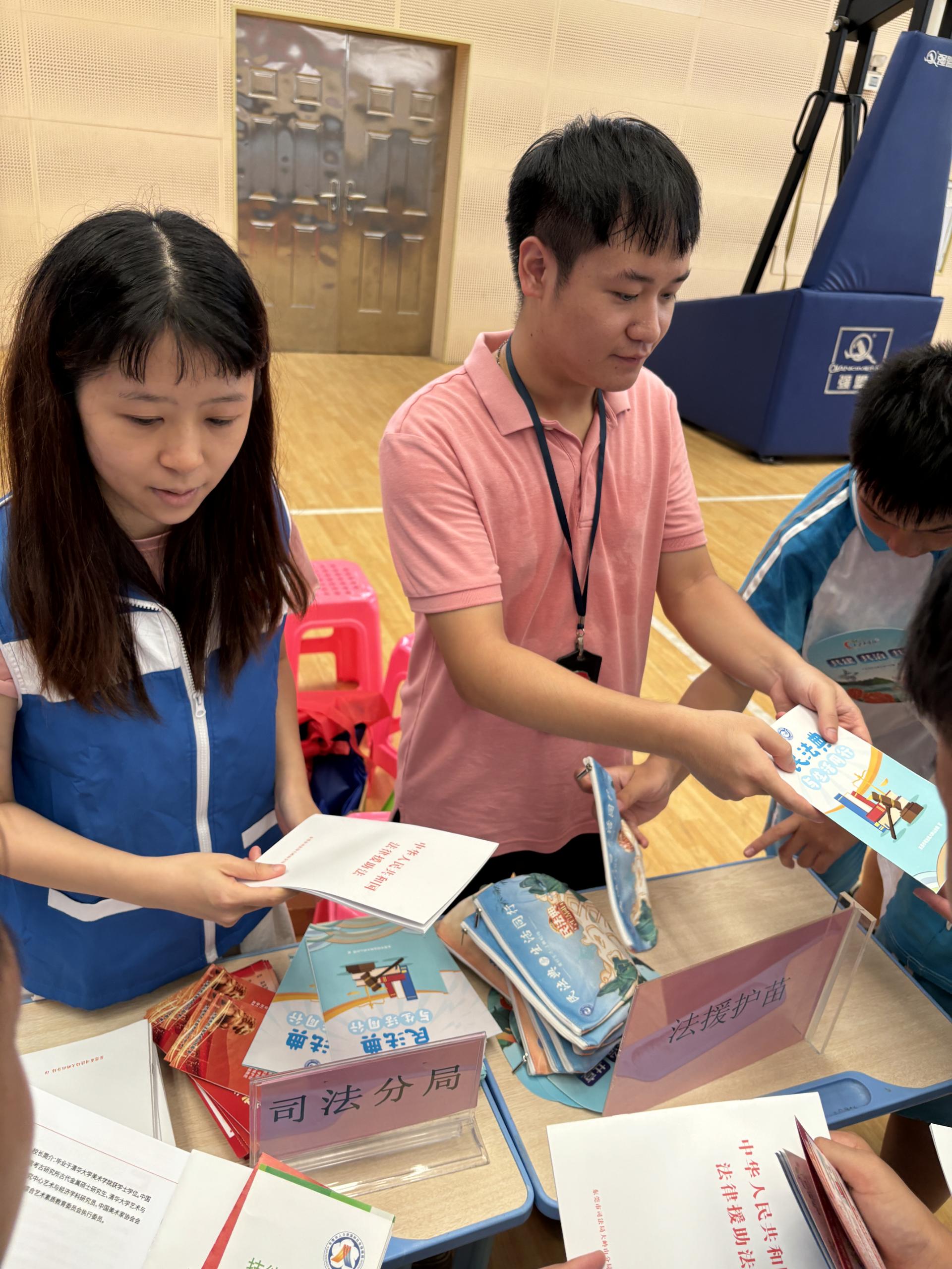 为深入贯彻《中华人民共和国法律援助法》,着力增强学生法律援助宣传力度,充分发挥法律援助在学生生活和工作中的作用,2024年8月28日,同德驻大岭山司法分局社工在新风中学体育馆开展了岭法之声,护航青春——大岭山开展法援普法活动。