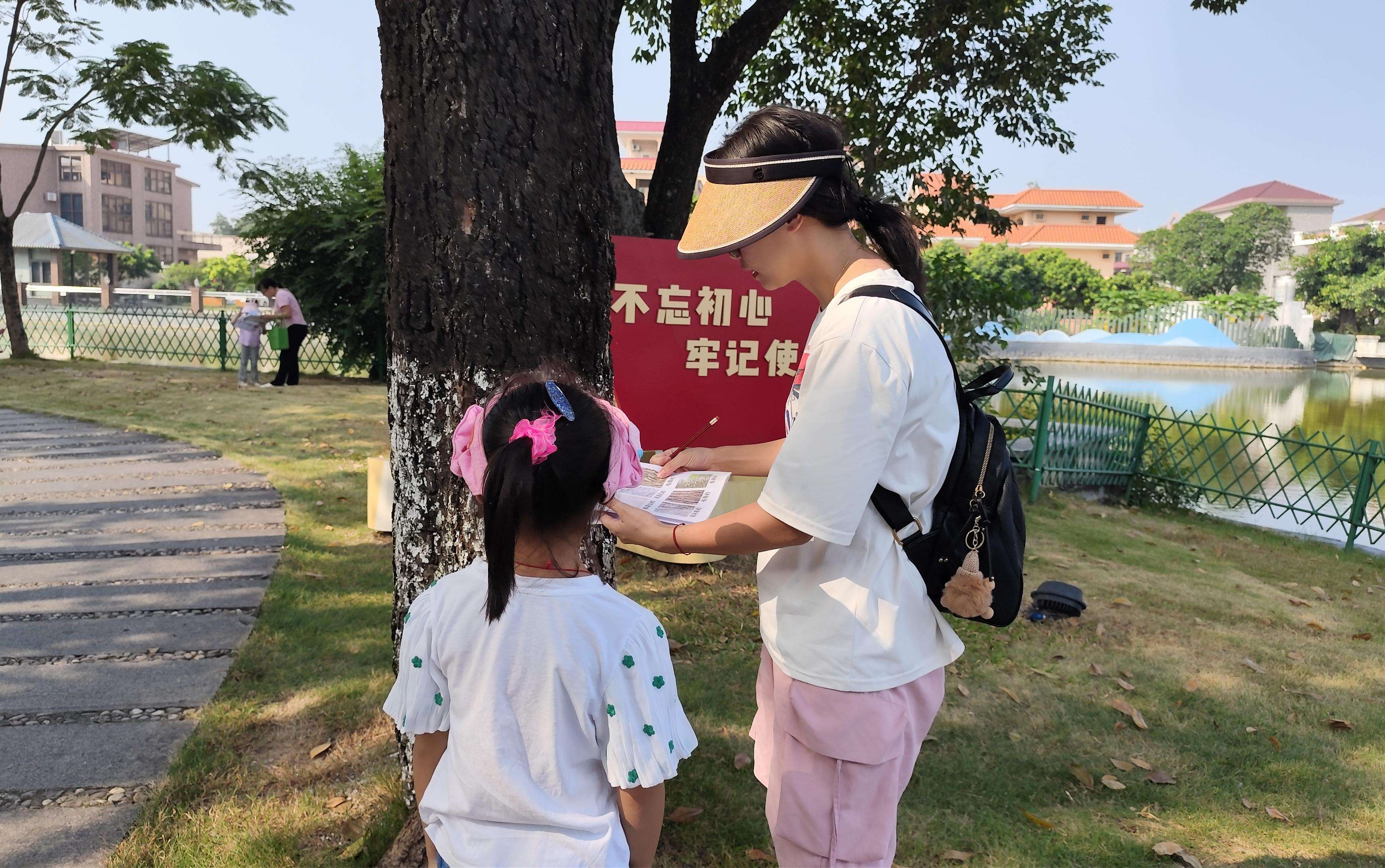 在工作人员的带领下,一行人满怀期待地前往美丽的海月公园,开启了一场寻找大自然宝藏的奇妙旅程。孩子们在家长的陪伴下,根据观察手册的指引,开始寻找自然界的宝藏,并记录下自己的发现和感受。他们时而低头探寻草丛中的小昆虫,时而抬头观察树上的小鸟,展现出对大自然的好奇心和求知欲。家长们也放下手机和工作中的烦恼,全身心地投入与孩子互动,耐心地解答孩子的问题,引导他们观察、思考,共同享受这份难得的亲子时光。