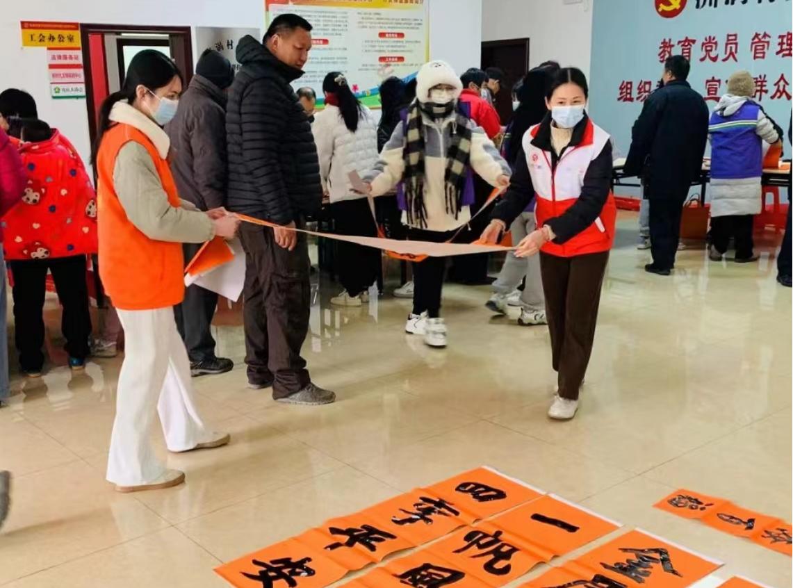 写春联、贴春联是春节的一大传统,人们喜欢用春联寄托对新年的希望与企盼。活动现场,书法爱好者们挥毫泼墨、笔法娴熟地书写春联,社工负责维护秩序、指引职工们排队。春联的内容既有辞旧迎新的美好愿景,也有宏图大展的励志词句。火红的纸张,淡淡的墨香,再加上一副副寓意吉祥的春联,呈现出浓浓的节日气氛。大家拿着红火的春联和福字高兴不已,纷纷表示谢意与赞美。活动为即将到来的春节增添了喜气洋洋的节日氛围,让职工群众感受到党和政府的关怀及工会“娘家人”的温暖。