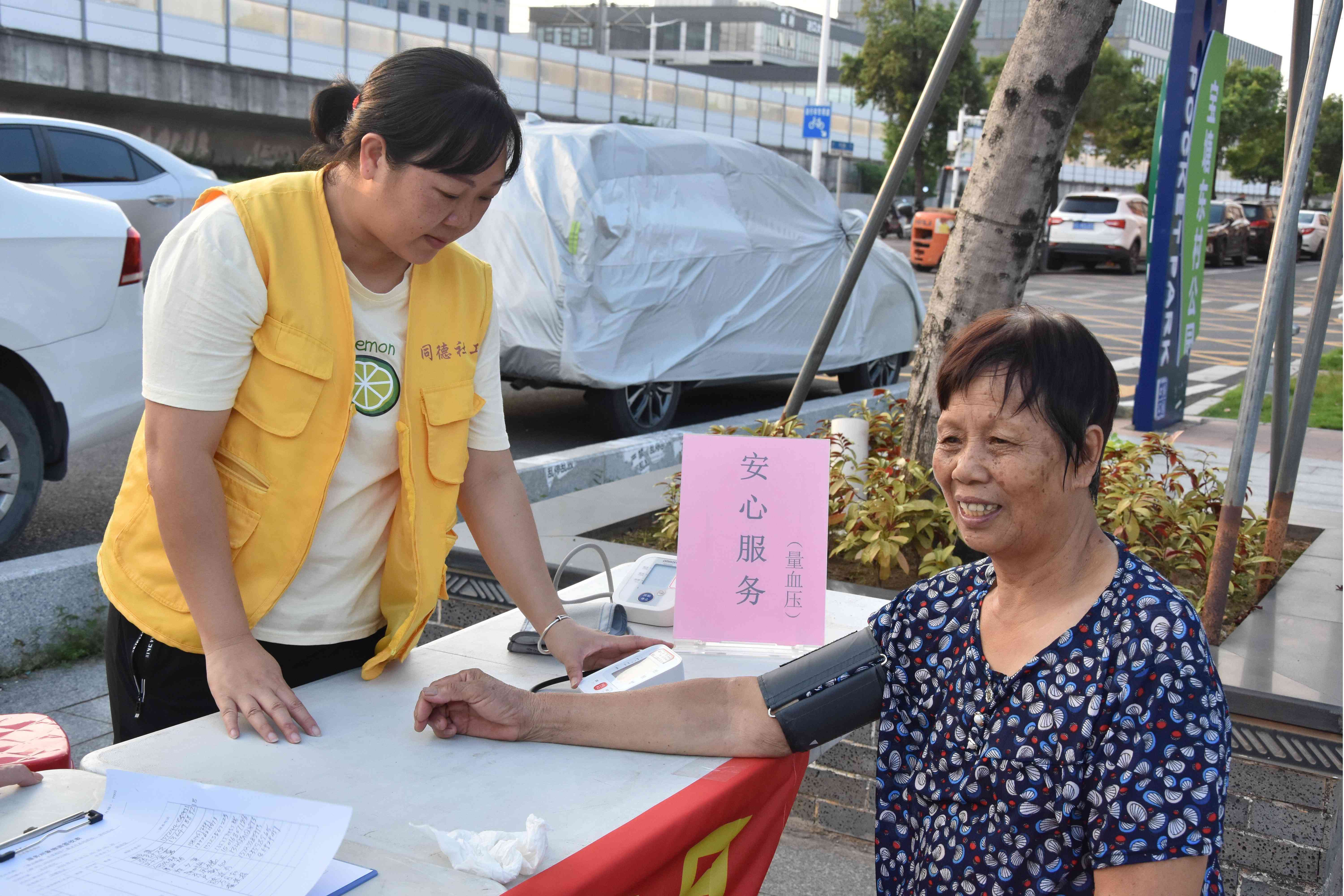 活动中,社工通过贴心服务(智能助老)、安心服务(量血压)、发放宣传单等形式,耐心地为老年人解答各种问题,提供贴心的服务。另外为了丰富广大群众的生活,现场还增设趣味游戏互动。在工作人员的指引下,大家有序排队玩起了游戏,其乐融融,互相交流,广场里充满欢声笑语。