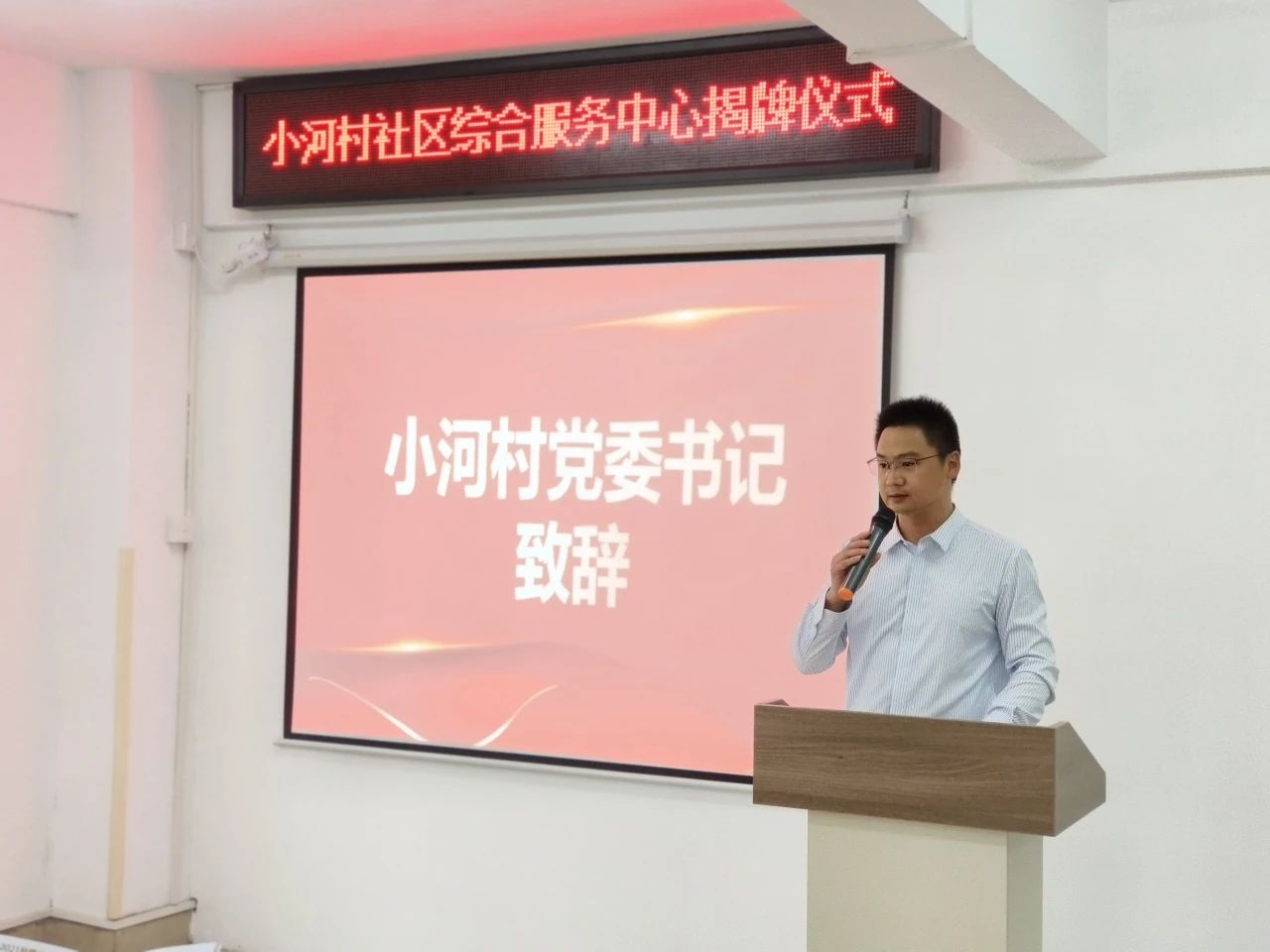 2025年1月23日下午,道滘镇小河村社区综合服务中心举行了揭牌仪式,出席本次揭牌仪式的领导有道滘镇小河村党委书记卢志明、道滘镇公共服务办副主任朱春霞、道滘镇社会工作与志愿服务协会会长蔡月艳、道滘镇小河村党委副书记温敬乐、道滘镇小河村民政干部杨碧霞、东莞市同德社会工作服务中心发起人黎日升,以及小河村两委干部、妇委、村民小组长等30余人。