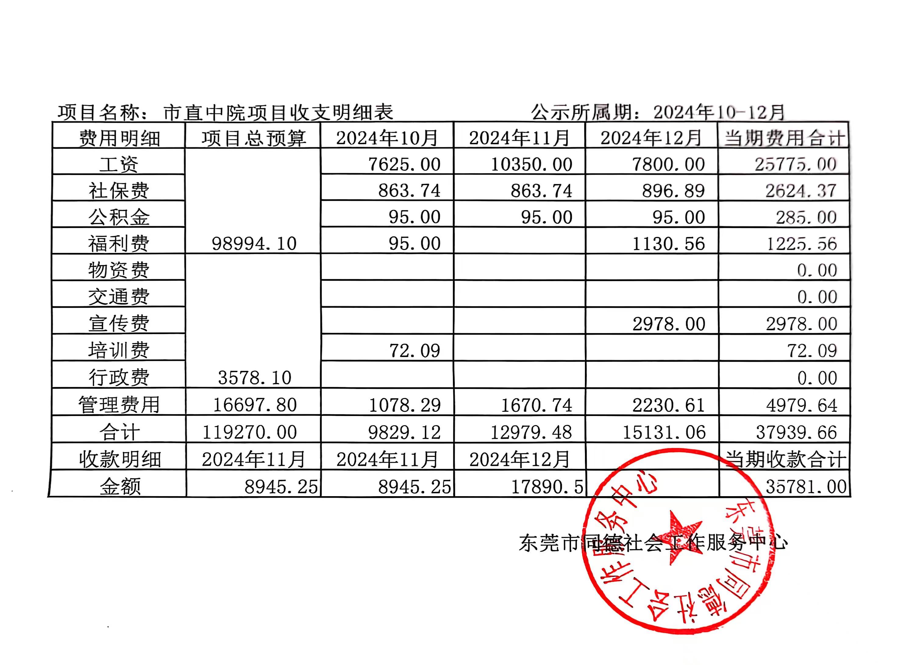 【东莞同德】市直中院岗位项目2024年10-12月资金使用情况公示
