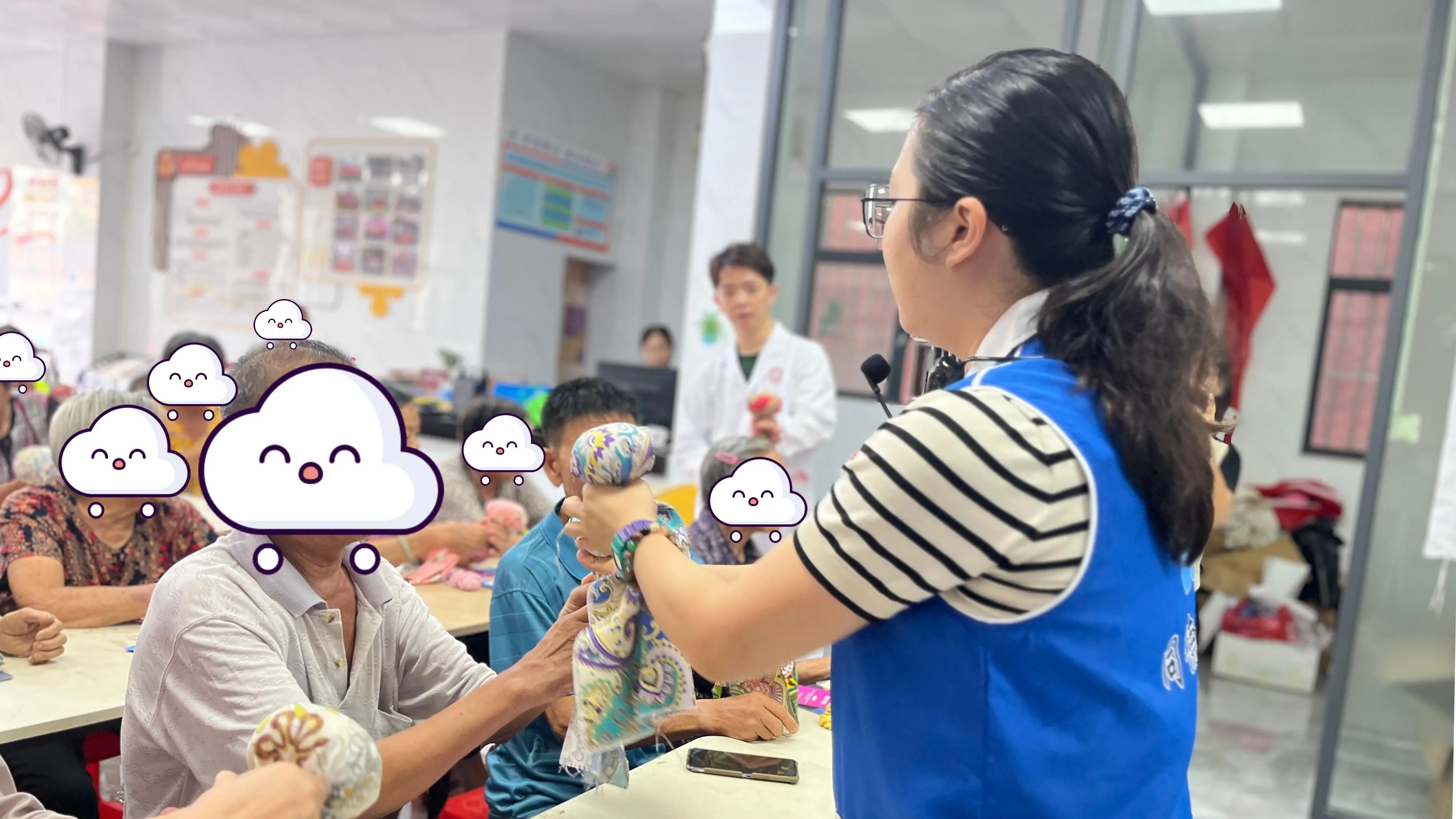 2024年9月27日同德驻万江街道“有邻友爱”大汾邻里文化营造项目社工在“艾”意满满—非遗艾草养生锤制作活动中指导长者制作艾草锤。
