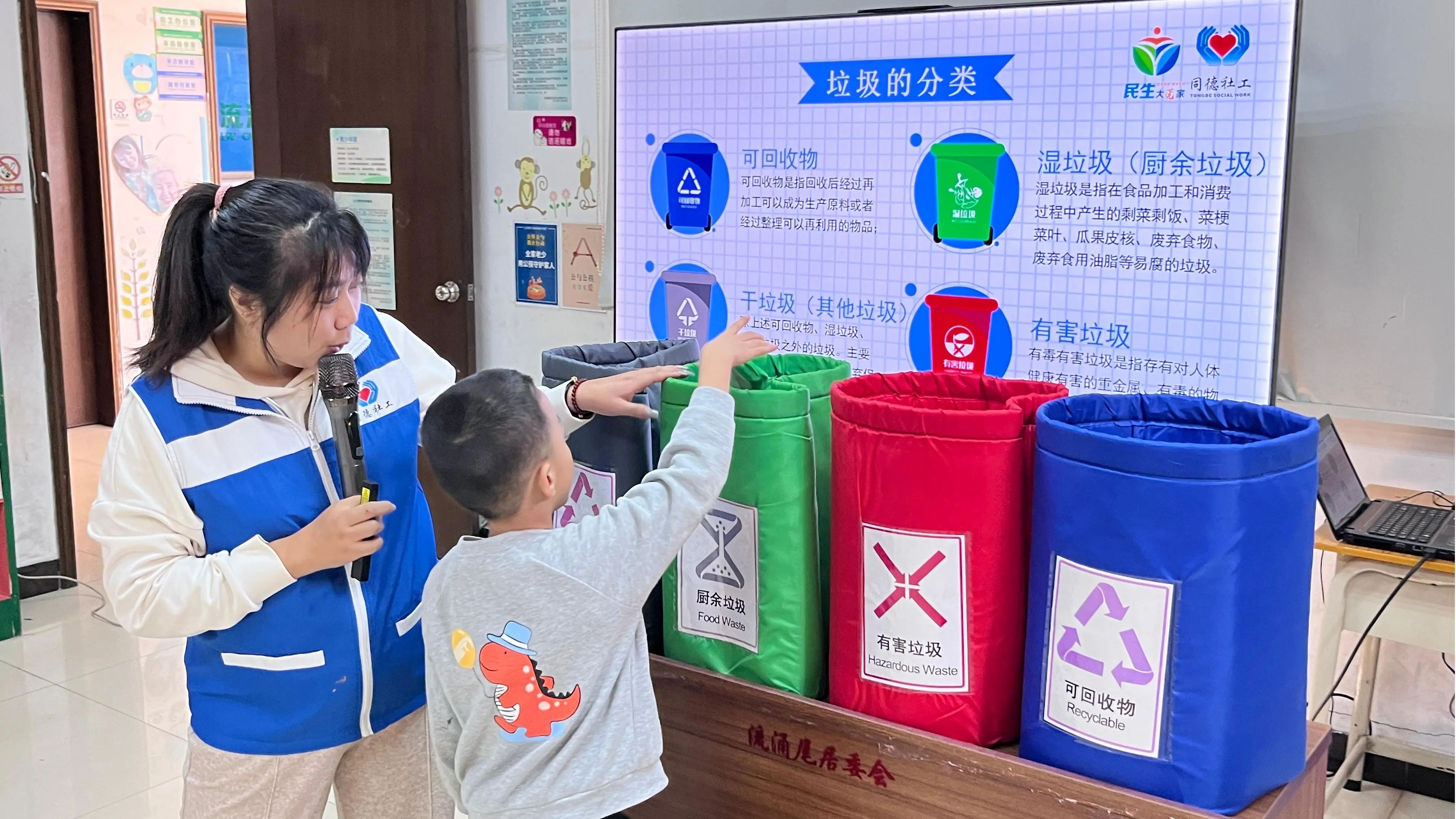 2024年11月23日同德驻万江街道“青春不迷茫”流涌尾青少年成长教育公益项目社工帮助社区青少年提升清洁技能,学习垃圾分类知识。