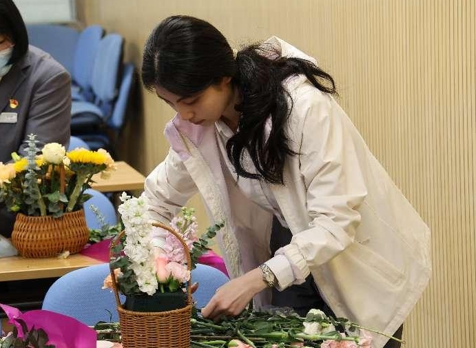 活动当天,大家早早地来到了活动现场,她们三五成群,和熟悉的小伙伴一起参加活动。五点半,活动准时开始,社工首先表达了对大家的节日祝福,然后向学员介绍了本次活动的花艺环节和手作包环节,参加者可以选择自己喜欢的环节参加。