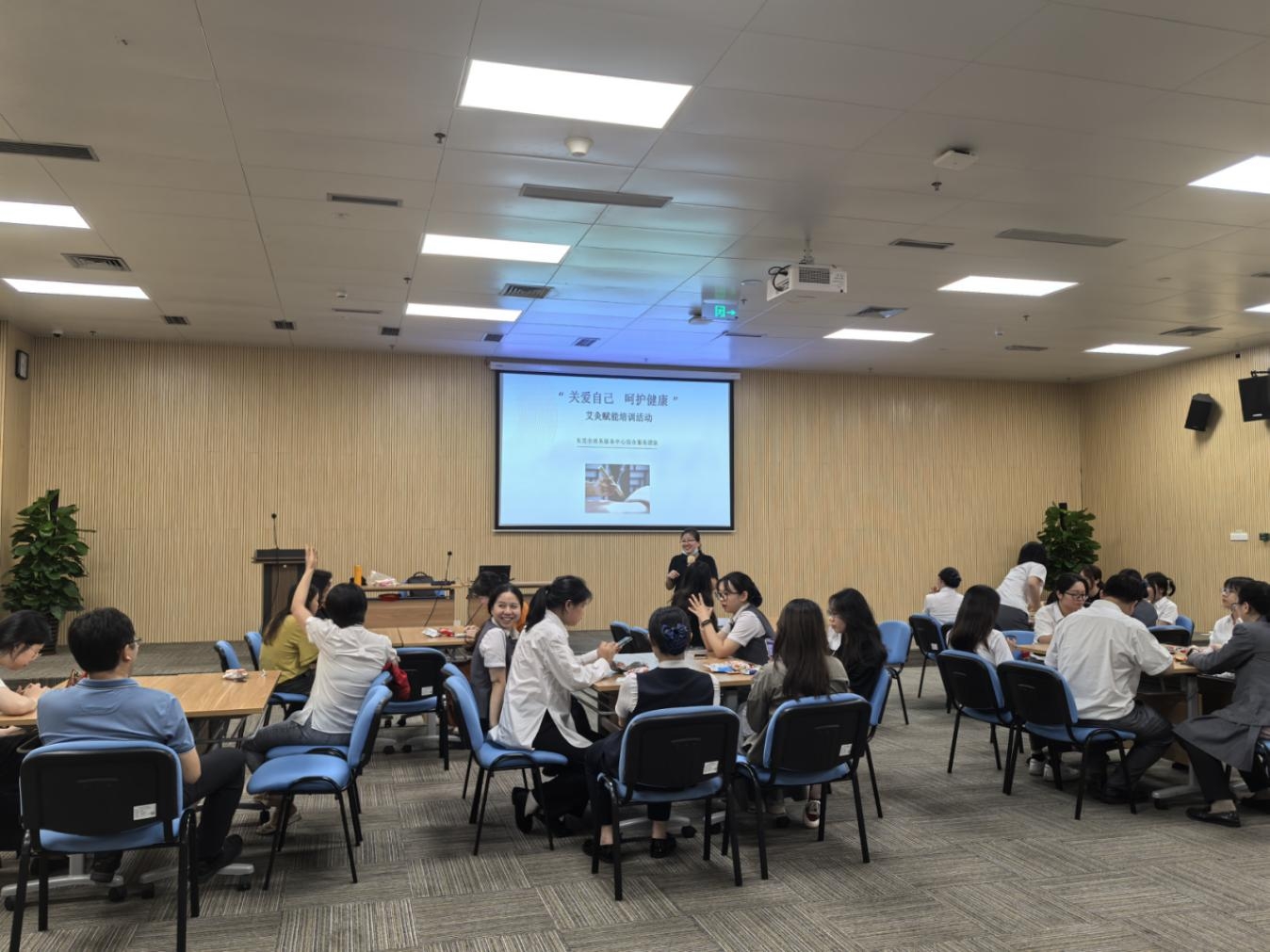 在繁忙的都市节奏中,久坐与长时间面对电子屏幕已成为许多市民群众及政务服务中心工作人员的常态,由此带来的亚健康问题日益成为不容忽视的社会议题,市民群众及政务服务中心工作人员都存在享受愉悦和健康的需求。于2024年8月20日,同德驻东莞市民服务中心社工携手专业中医艾灸老师,在东莞市政务服务中心成功开展了“关爱自己, 呵护健康”艾灸赋能培训活动。