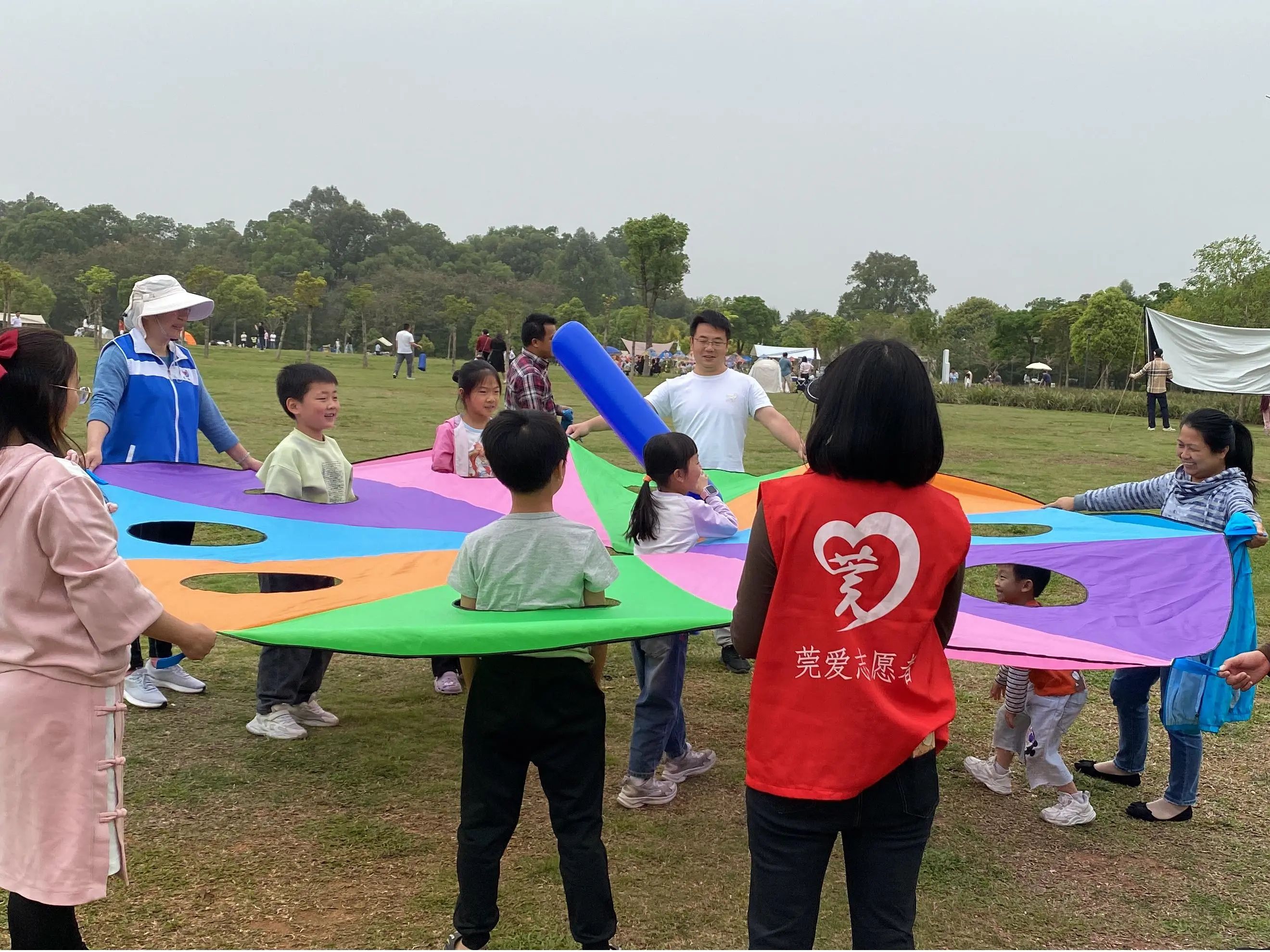 启动仪式上,社工绘制了志愿树让居民签到打卡,随后围绕项目背景、目标、重点服务计划及预期成效进行了详细讲解,并通过随机问答与居民互动,加深参与者对项目的理解。现场居民踊跃提问,展现出对项目的浓厚兴趣与期待,社工也耐心地逐一为其解答。问答环节结束后,莞爱志愿服务队、客家宣传服务队及巾帼志愿服务队代表带领居民参与了现场的趣味互动,真人打地鼠、拔河等游戏彻底点燃了现场的氛围,公园内欢声笑语不断。