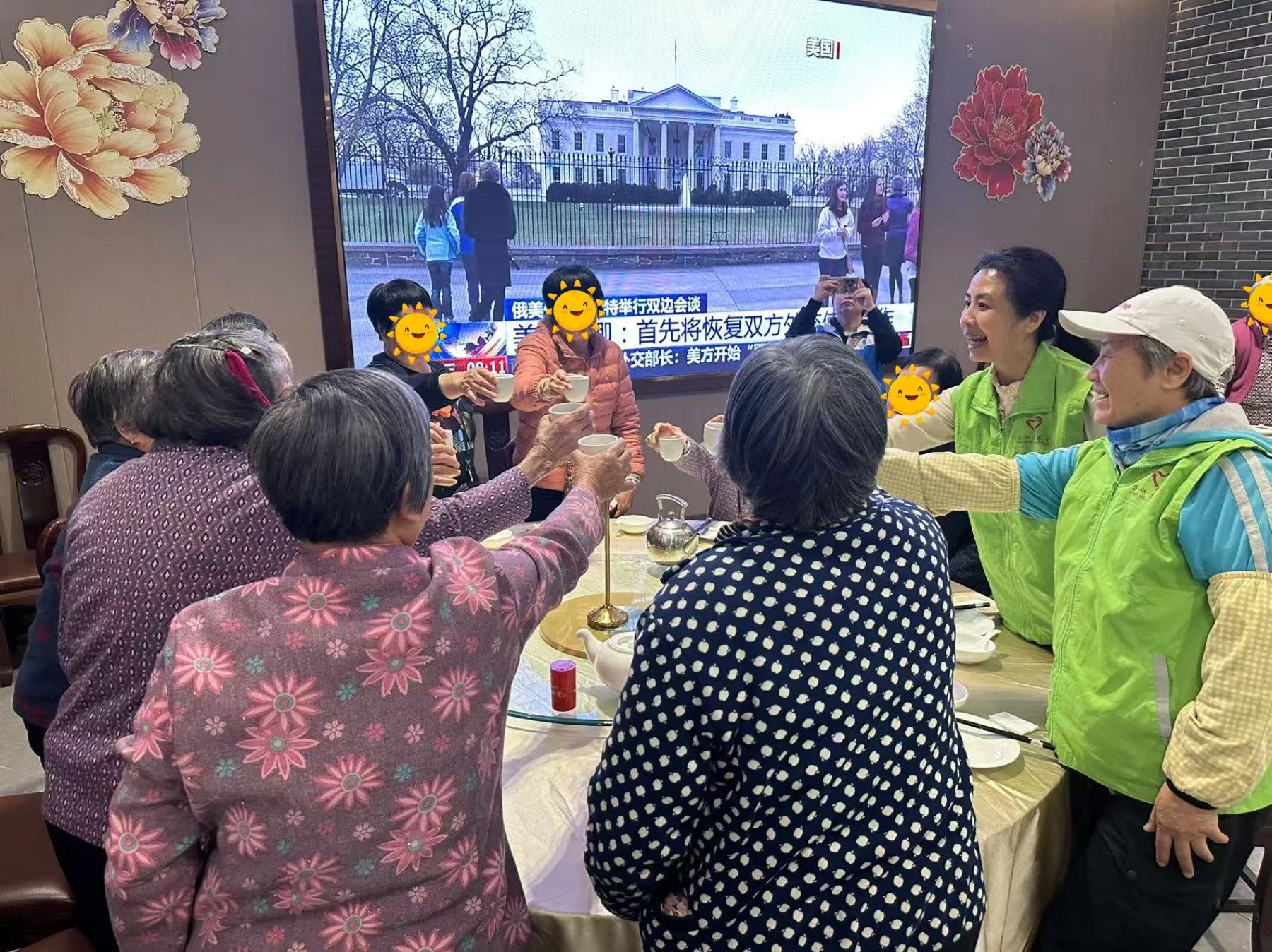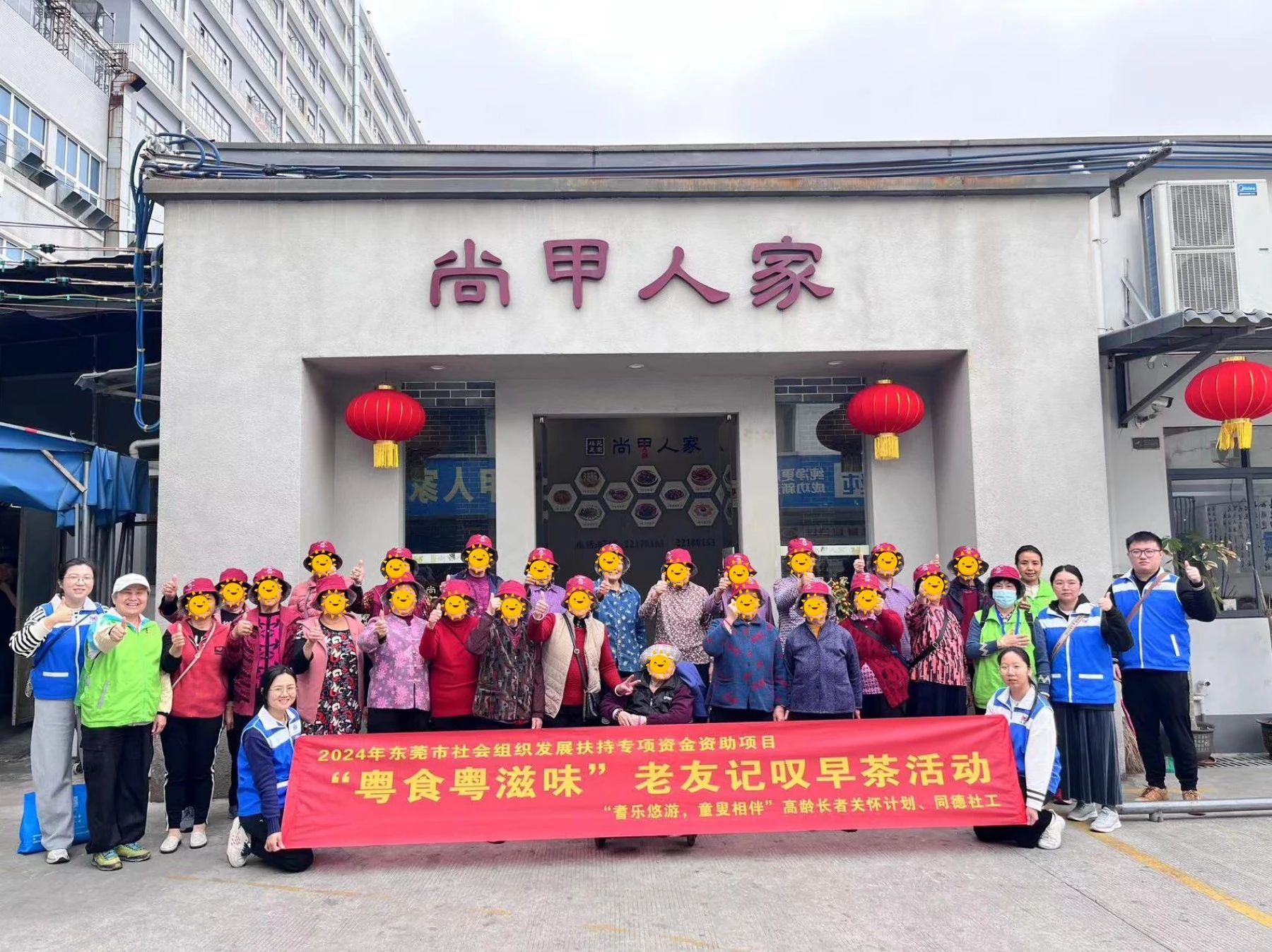 2025年2月19日,同德驻万江居家养老项目社工组织万江街道金泰社区的高龄长者到茶楼开展“粤食粤滋味”老友记叹早茶活动(第一期),此次活动旨在弘扬中华民族尊老爱老的传统美德,通过地道的广式早茶,让社区的长者们欢聚一堂,享受美好时光,提升他们的幸福感。