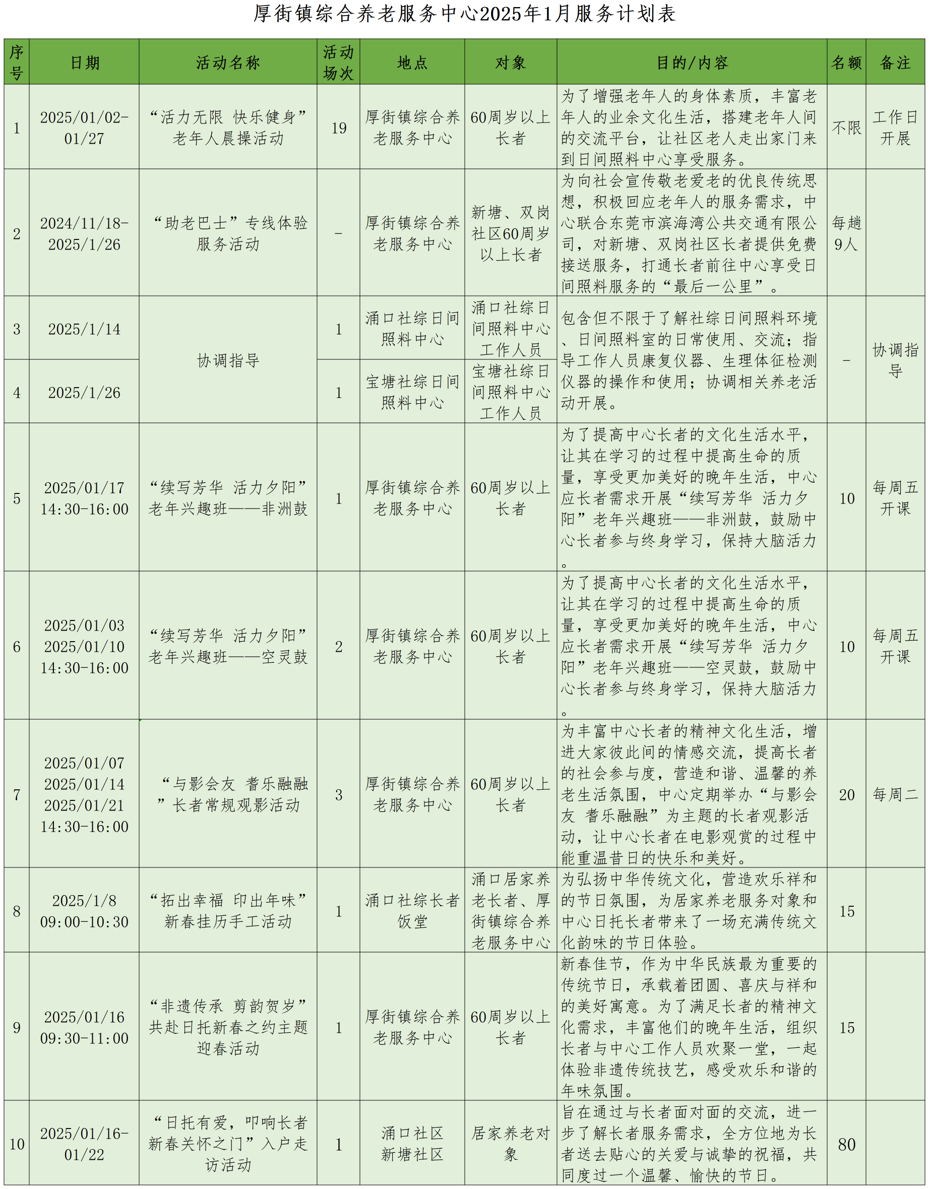 【厚街综合养老】1月活动预告