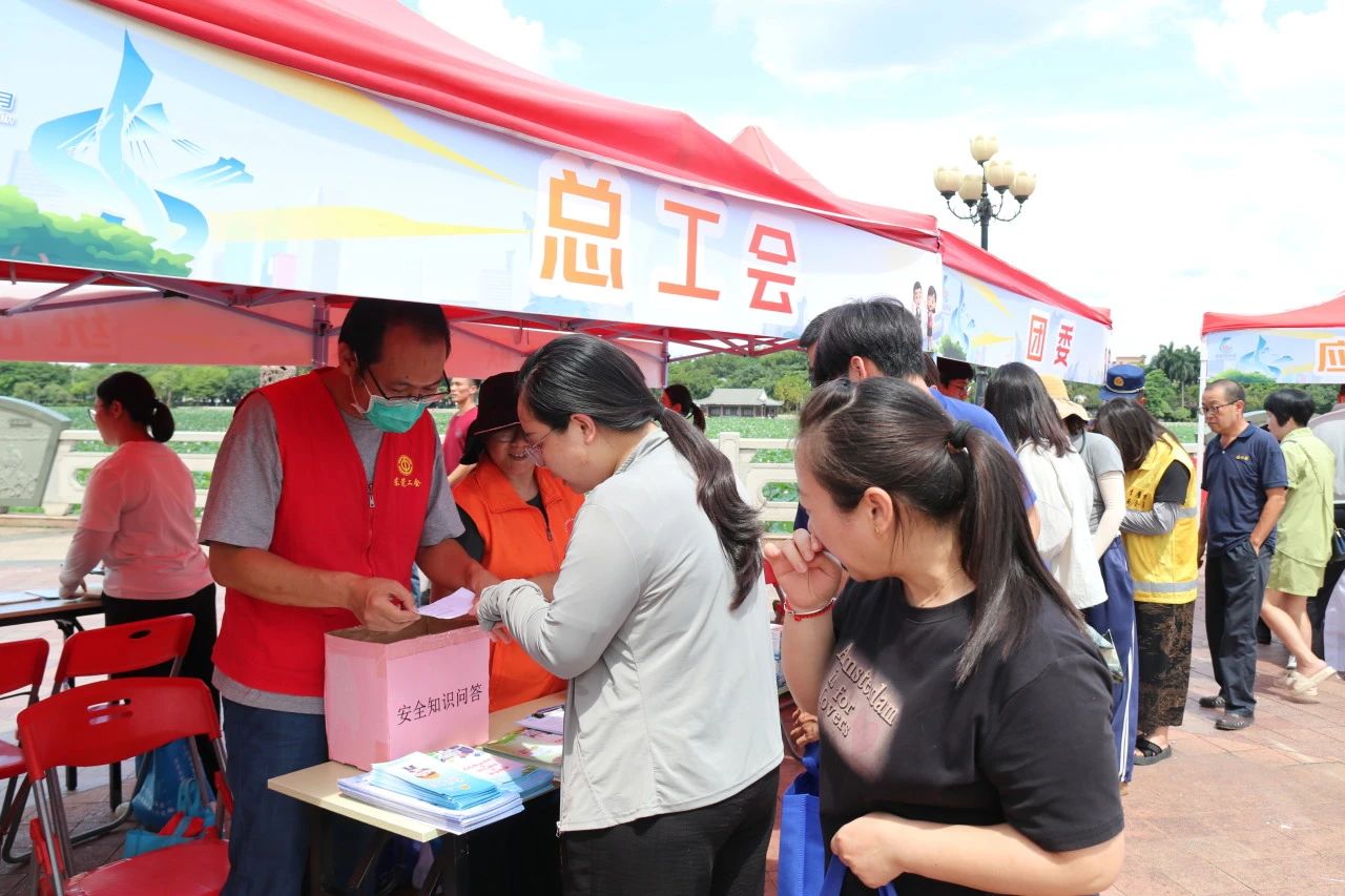 为强化安全工作宣传,创造安全职场环境,提高职工的安全意识,普及工伤预防知识,减少安全事故的发生,同德驻东莞市总工会关爱工伤职工项目社工联合桥头镇总工会、桥头先锋号职工服务中心,于2025年6月24日下午在桥头镇金荷花广场开展了“强化工伤预防宣传 筑牢安全生产防线”宣传活动,共吸引200多名职工到场参与。