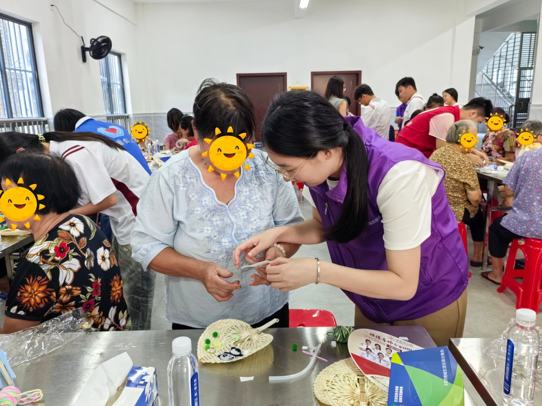 吃完蛋糕,活动就来到了压轴的手工蒲扇制作环节,长者们发挥创意,将绒球、彩绳等素材按自己的想法排列粘贴在素白扇面上。78岁的张阿姨向社工展示了自己的作品并感慨道:"夏天摇着自己画的扇子,肯定特别凉快!"