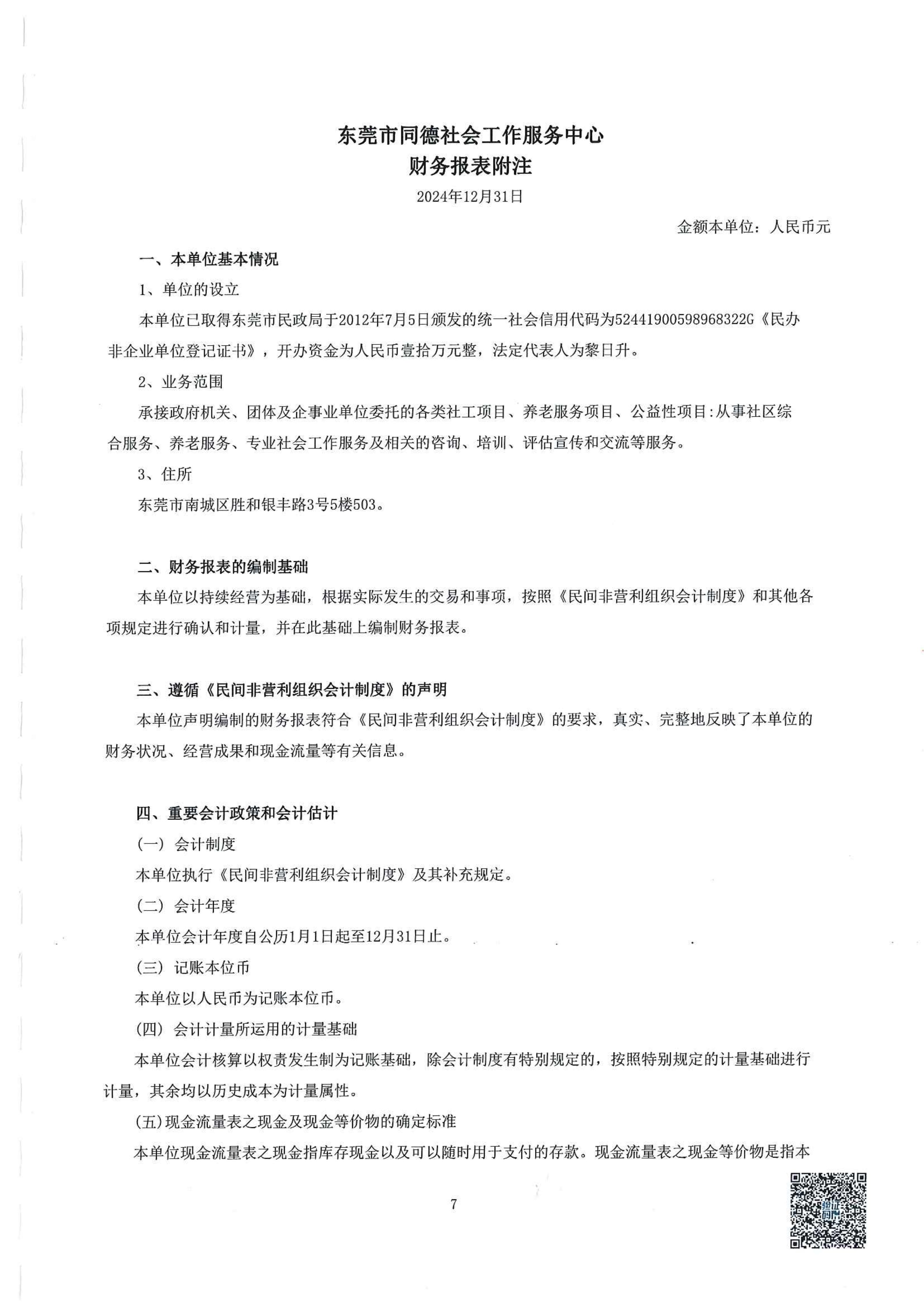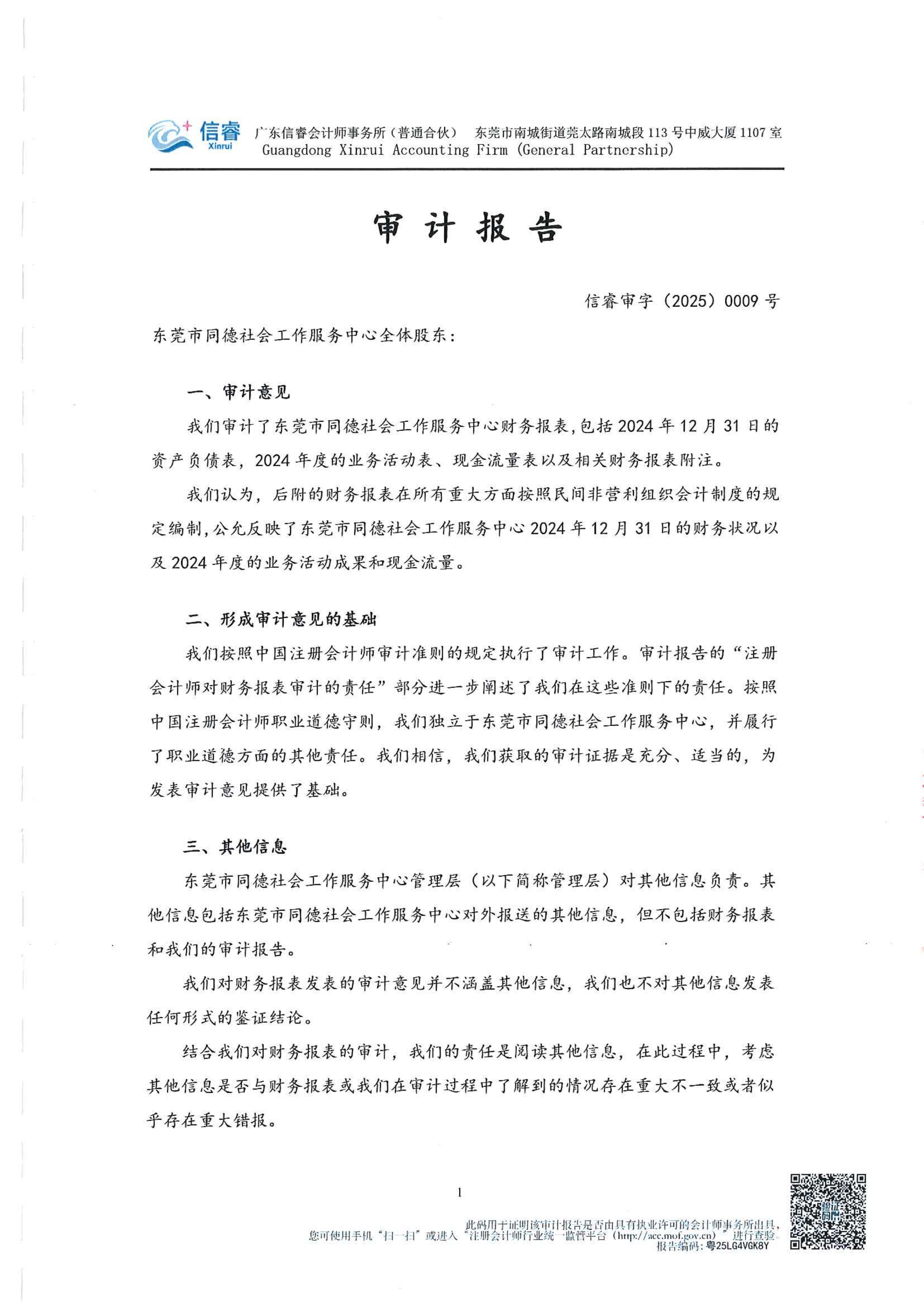 【东莞同德】东莞市同德社会工作服务中心2024年度财务审计报告