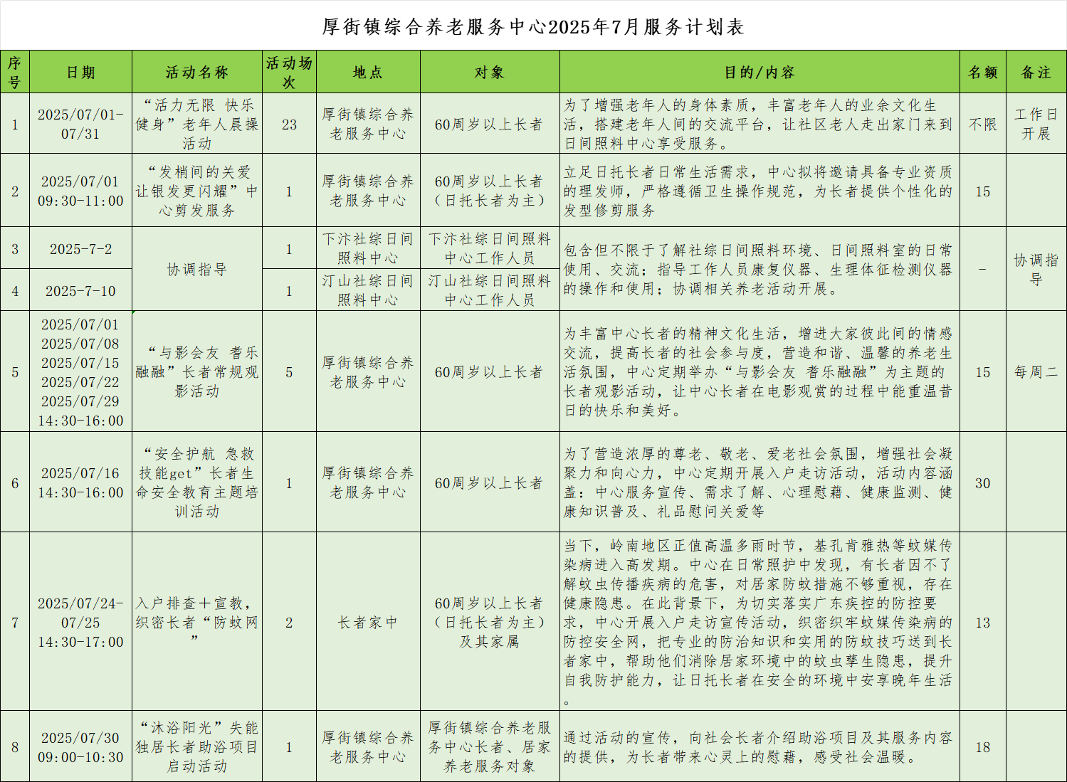 【厚街综合养老】7月活动预告
