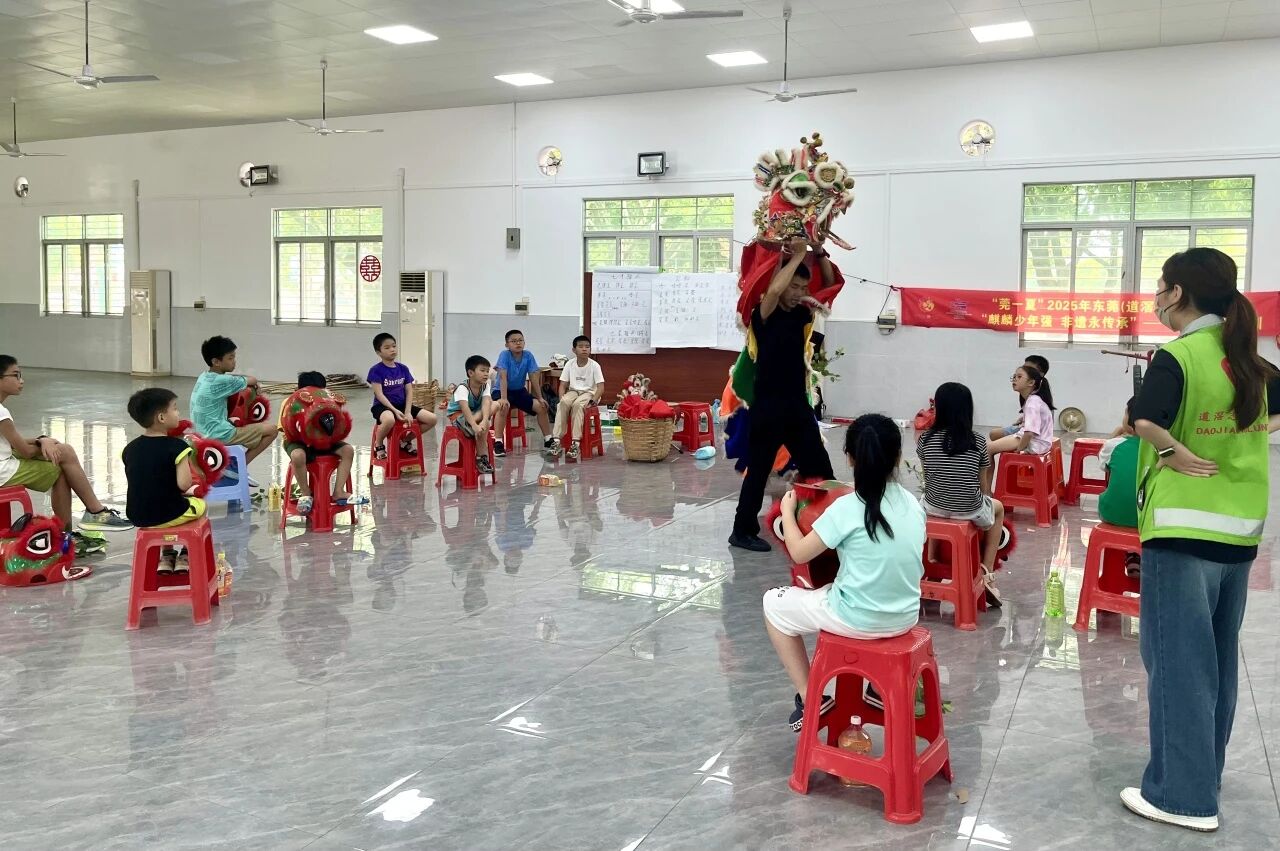 8月4、5、6、12、13、14日上午,同德驻道滘镇南丫社区综合服务中心社工联合南丫村委会、东莞市文化馆道滘分馆共同开展了“麒麟少年强,非遗永传承”南丫村青少年麒麟引凤培训小组,旨在让青少年近距离接触非遗文化,传承和弘扬麒麟引凤这一传统民俗技艺,小组共吸引了90人次青少年参与。