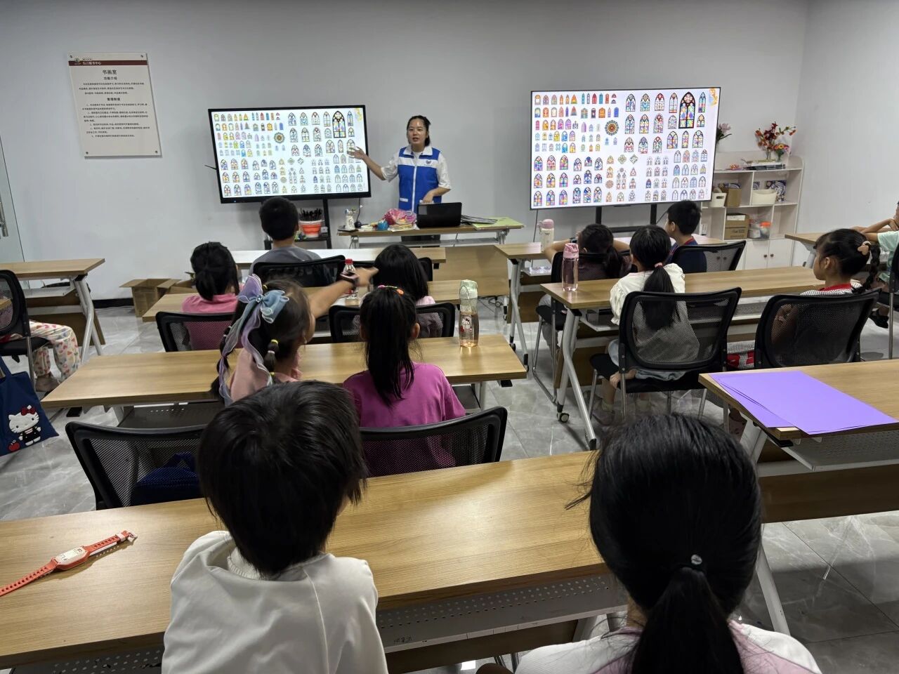 哥特式建筑课上,社工通过生动的图片、精致的模型以及有趣的互动问答,带领小朋友们深入认识了尖拱、飞扶壁、玫瑰花窗等哥特式建筑的经典元素。为进一步强化直观体验,社工鼓励小朋友们打破思维定式,用竹签在锡纸上刻出圣心大教堂的线条。当阳光透过锡纸上的刻痕,在桌面上投射出五彩斑斓的光影时,小朋友们不仅纷纷发出感叹,感觉自己置身于神秘的哥特式教堂之中,深刻感受到了哥特式建筑的魅力。