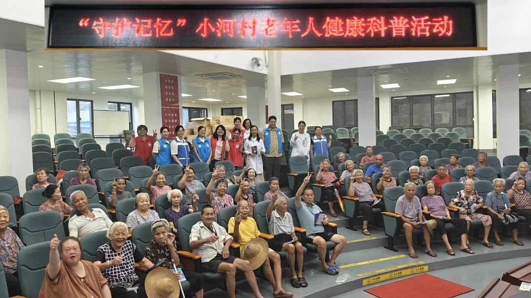 为进一步提高社区老年人对脑健康的重视程度,帮助他们掌握识别和维护脑健康的方法,2025年8月15日,同德驻道滘镇小河村社区综合服务中心社工链接了东莞市人民医院专业医疗团队开展了“守护记忆”小河村老年人健康科普活动。活动共吸引了48名老年人参与。