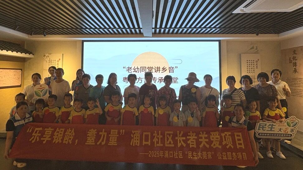 9月11日下午,同德社工驻厚街镇涌口社区综合服务中心社工,依托民生大莞家公益服务项目联合海月第三幼儿园在涌口村史馆开展了一场"老幼同堂讲乡音"粤语方言传承活动。活动通过祖孙结对、趣味互动的形式,让15对祖孙在村史馆内开启了一场充满温情的方言文化之旅。