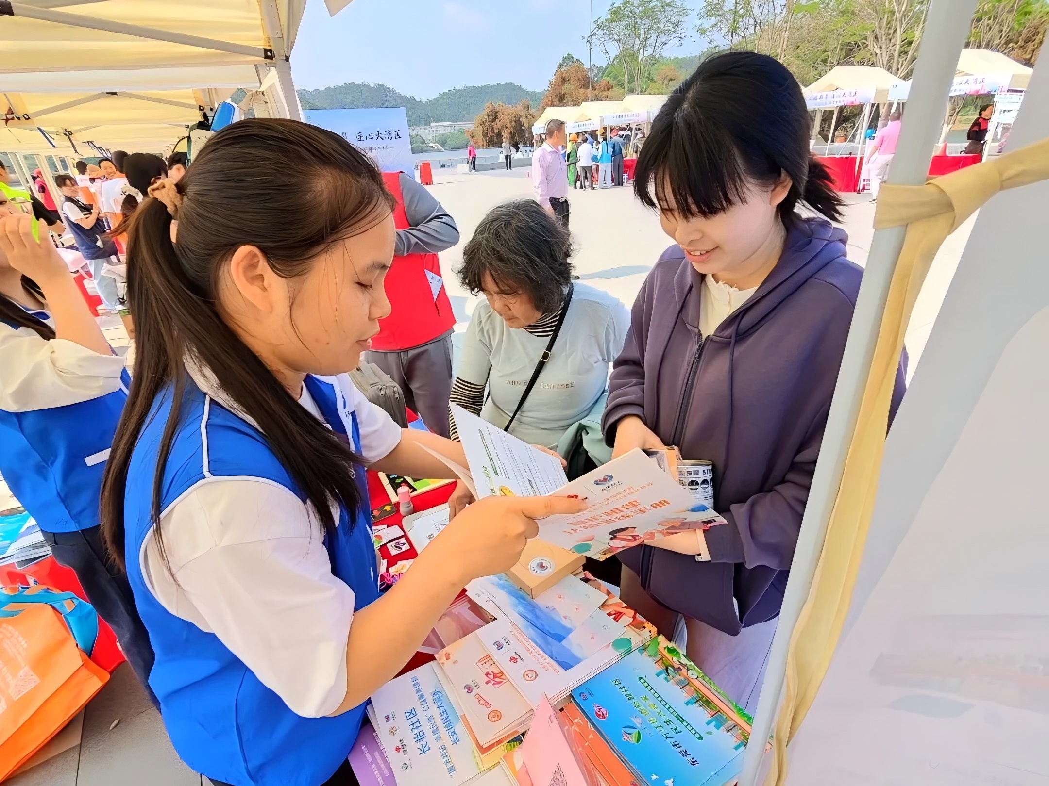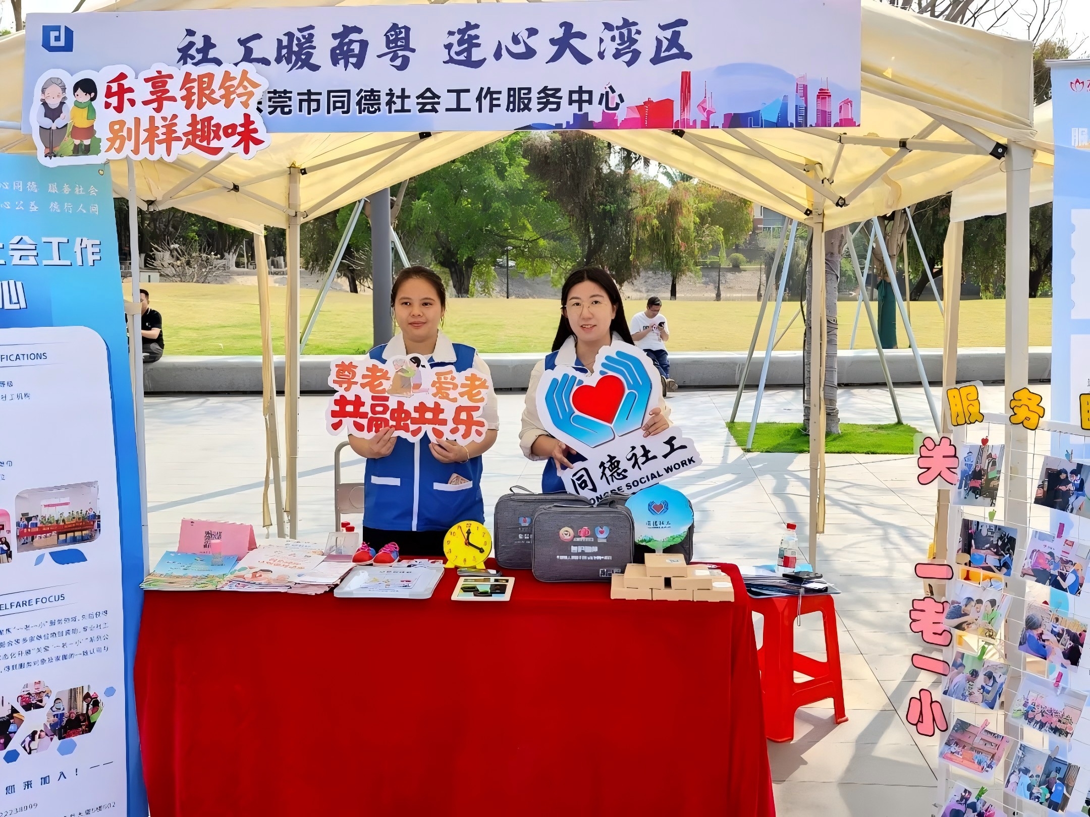 春日暖心践初心,社工同行筑美好。由东城街道公共服务办公室主办的2026年度“广东社工周”主题宣传活动,于2026年3月20日在虎英郊野公园活力广场举行。东莞市同德社会工作服务中心(以下简称“同德中心”)以及同德中心承接的峡口社区综合服务中心均受邀参加。本次社工周活动通过摊位展示、公益海报等形式,普及社会工作专业知识、服务领域、政策法规,提升公众对社会工作的认知度,传播社工正能量,深入践行“助人自助”的社工专业理念。
