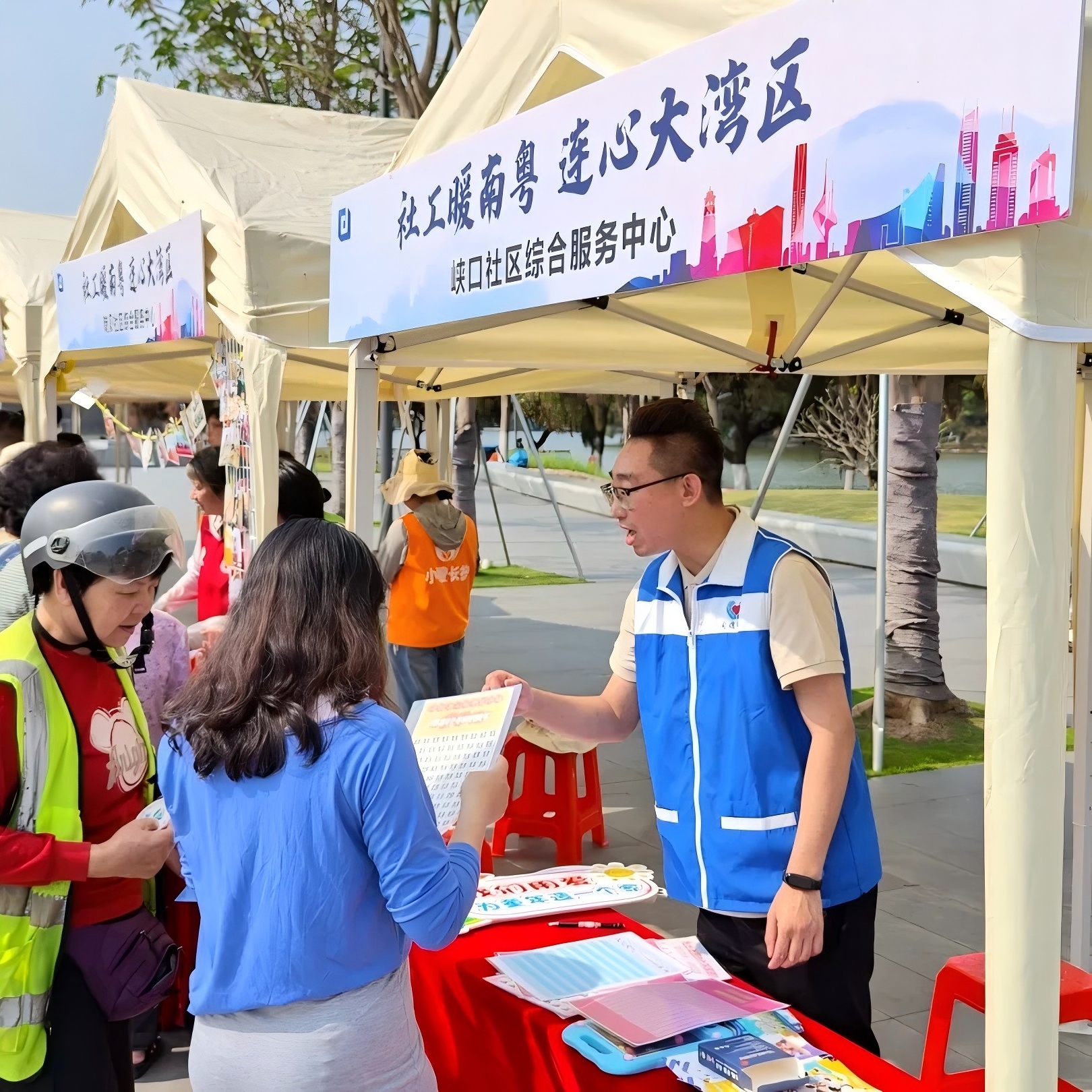 同德中心承接的东城街道峡口社区综合服务中心摊位则通过照片、数据、介绍手册等形式,展示峡口社综聚焦于辖区老年人、残疾人、青少年儿童、妇女等领域群体,为他们提供心理支持、安全教育、亲子成长等服务;同时,社综社工主动为社区服务对象提供个案辅导、资源链接、社会融入等社会支持。一组组详实数据、一个个暖心故事,生动展现同德社工专业的社会工作理念。同德机构深耕社区治理,以社区需求为导向,积极搭建居民互动平台,激发社区自治活力,为社区的建设贡献力量。