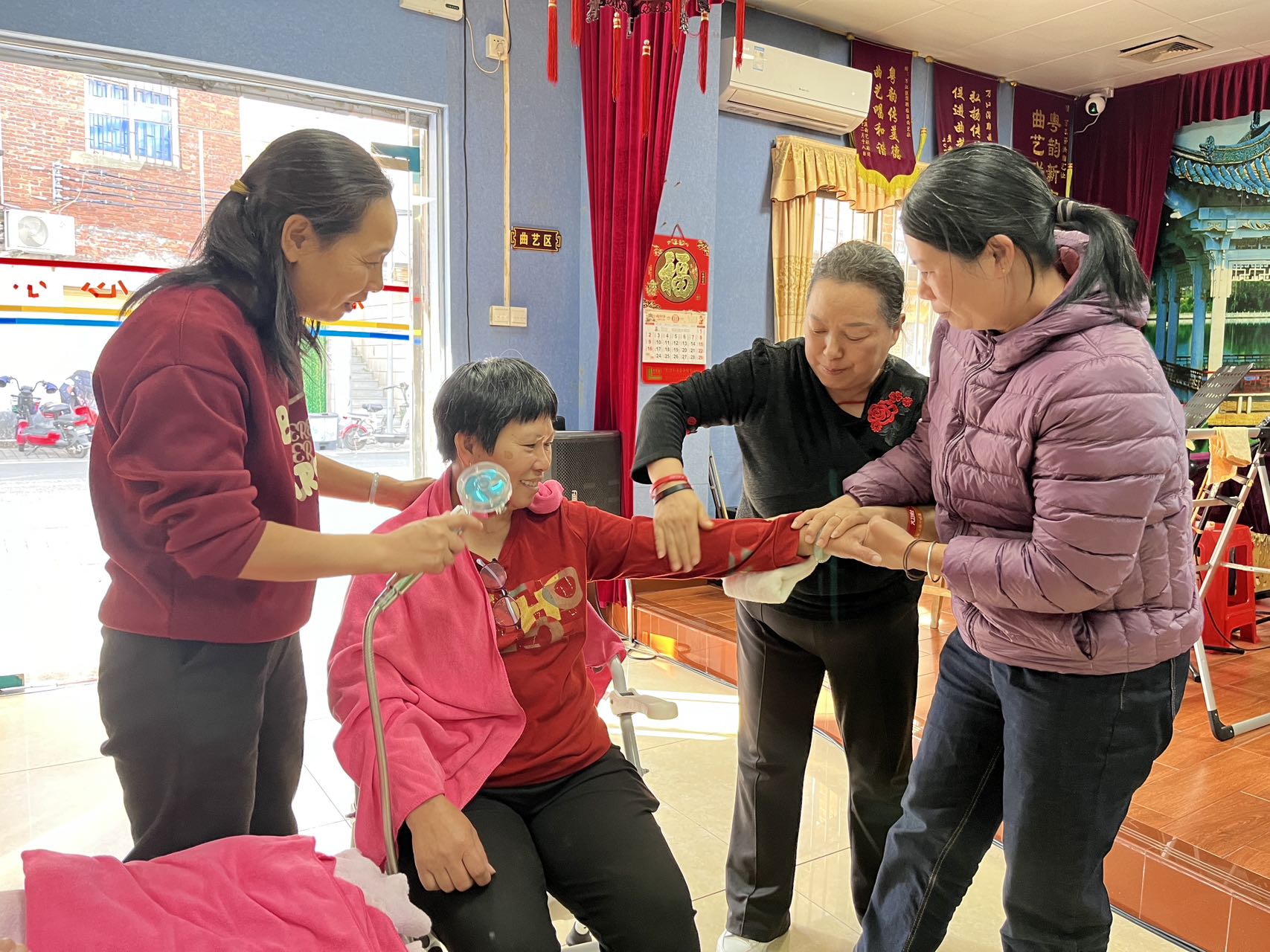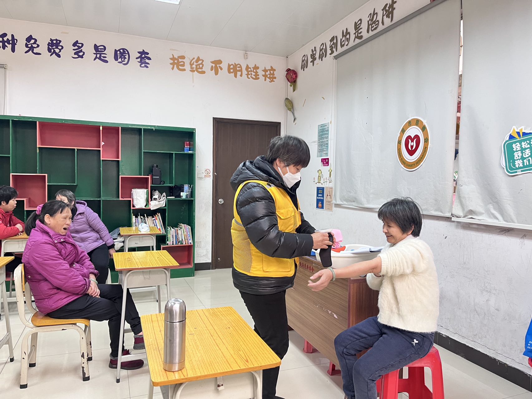 在随后的第一、二期助浴活动中,面对低温挑战,助浴师们细致评估室温与水温,轻柔地为老人清洁身体。同步上门的医生团队则为老人测量血压、血氧,提供冬日护理指导,真正实现了“助浴+健康监测”的一体化服务。