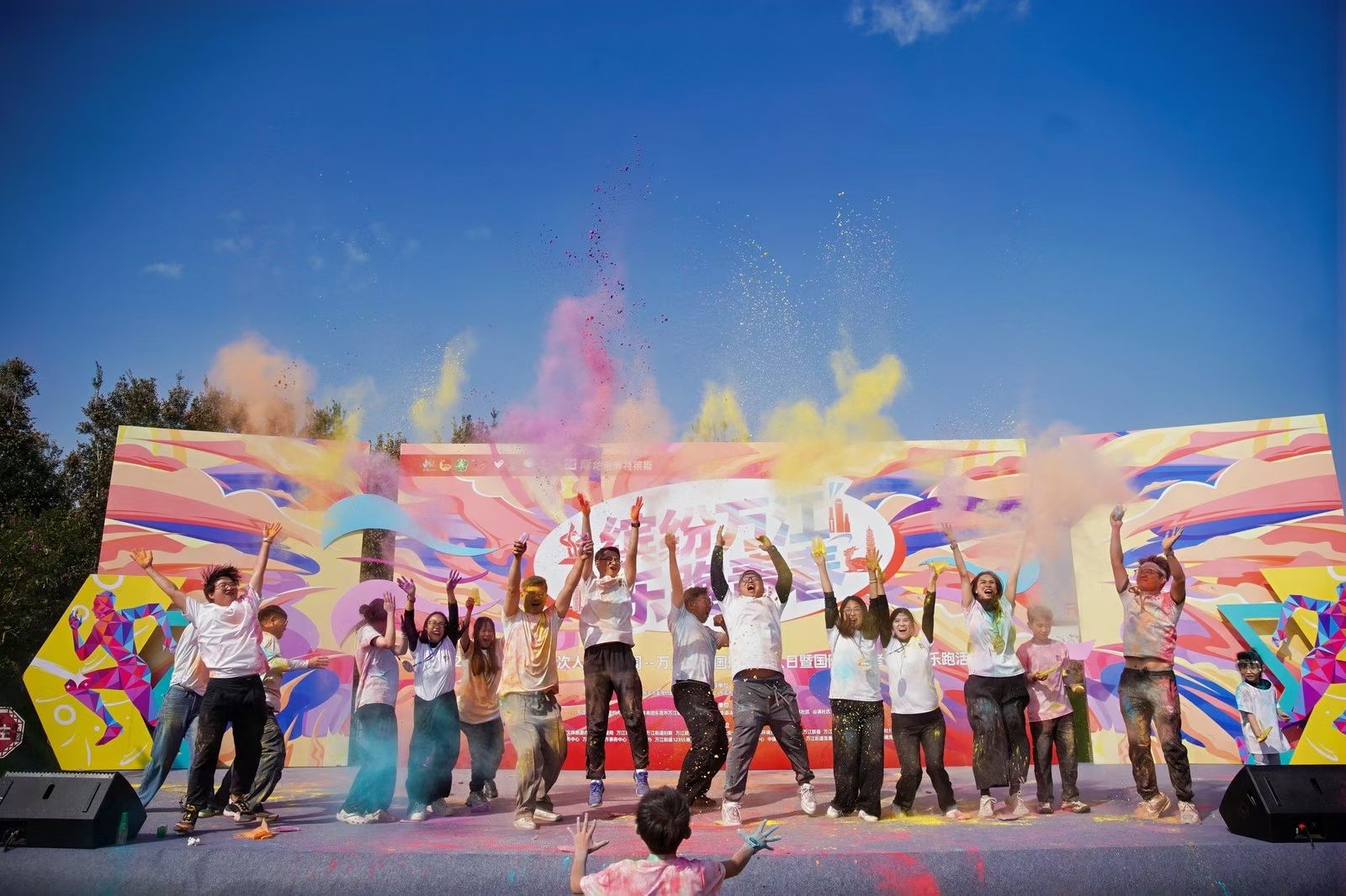 随着清脆的笛音响起,6公里公益乐跑拉开帷幕。跑友们身着统一服装,从滘联社区起龙广场出发,经过万江儿童公园、正丫湾河堤等打卡点,在清新空气与自然美景中尽情奔跑,不时与沿途村民挥手致意。在彩粉投掷点,五彩粉末随风扬起,落在跑友们的衣衫与脸庞上,欢呼声、呐喊声此起彼伏。
